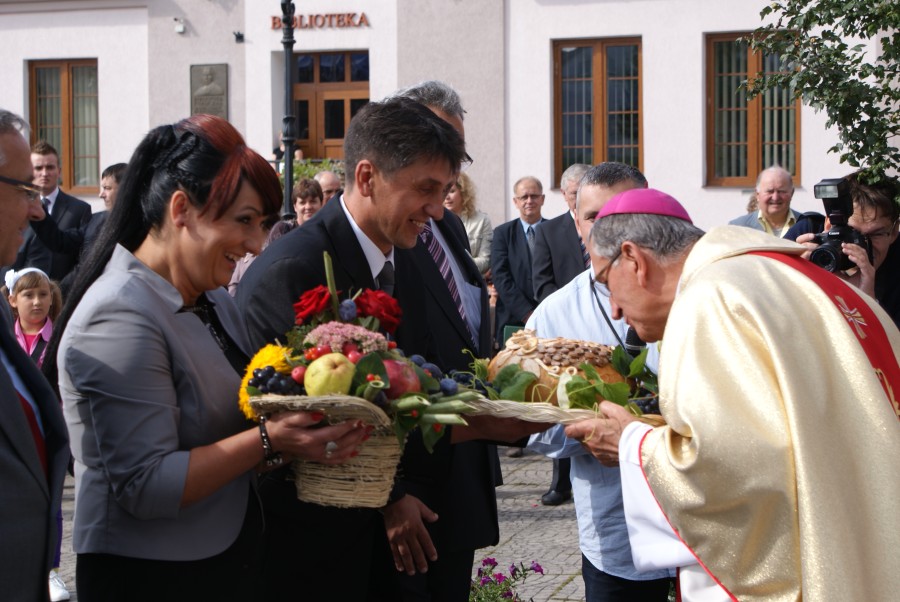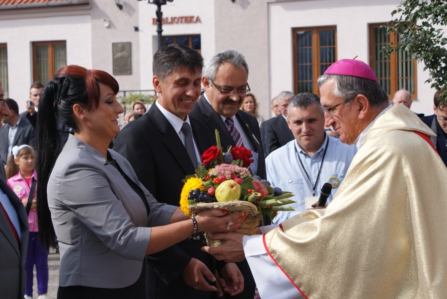 Uroczystości rozpoczęły się przemarszem barwnego korowodu, który z pięknymi wieńcami dożynkowymi przeszedł ulicami miasta do kościoła pw. św. Jakuba Apostoła, w którym mszę świętą celebrował biskup diecezji elbląskiej Jan Styrna.