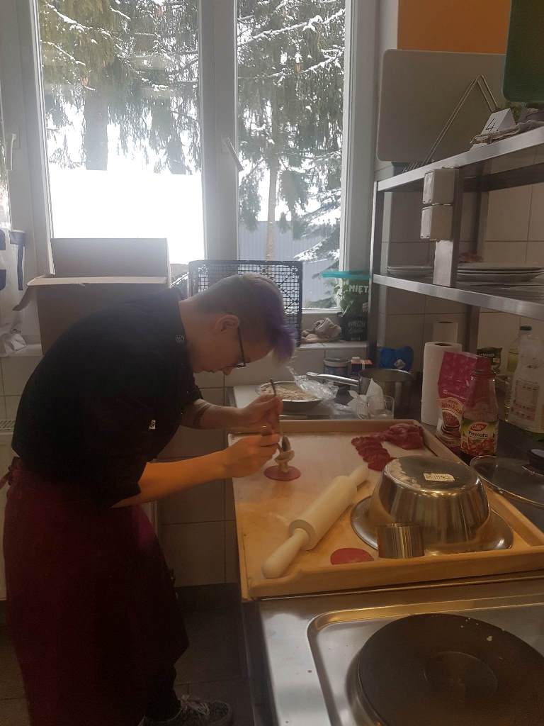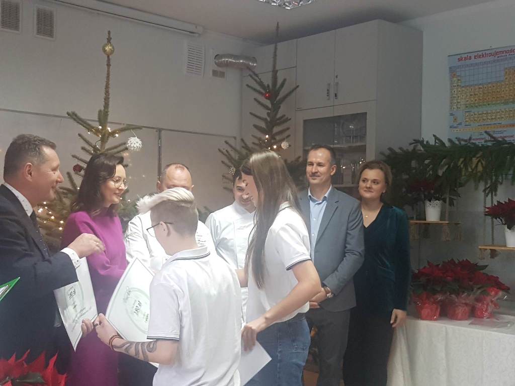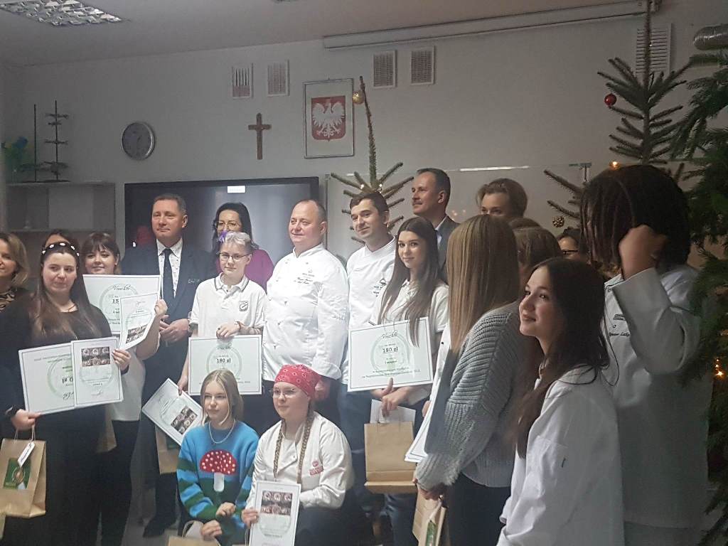 Julia przygotowywała pierogi z nadzieniem twarogowo - piernikowym z czekoladą, na sosie jogurtowo – cytrynowym, natomiast Wiktoria zajęła się nakryciem bożonarodzeniowego stołu. Konkurs odbył się w Zespole Szkół Rolniczych w Ostródzie. Uczniowie oceniani byli przez dwóch profesjonalnych szefów kuchni: Dariusza Strucińskiego z Hotelu Anders Stare Jabłonki oraz Wojciecha Rabiega - Hotel&Restauracja Nad Sandelą w Lubawie. Pan Dariusz Struciński komplementował drużynę ZSEiT, powiedział, że „ pokazała siebie na talerzu i na stole” i nie bała się zaryzykować, ponieważ jako jedyna przygotowała pierogi na słodko.