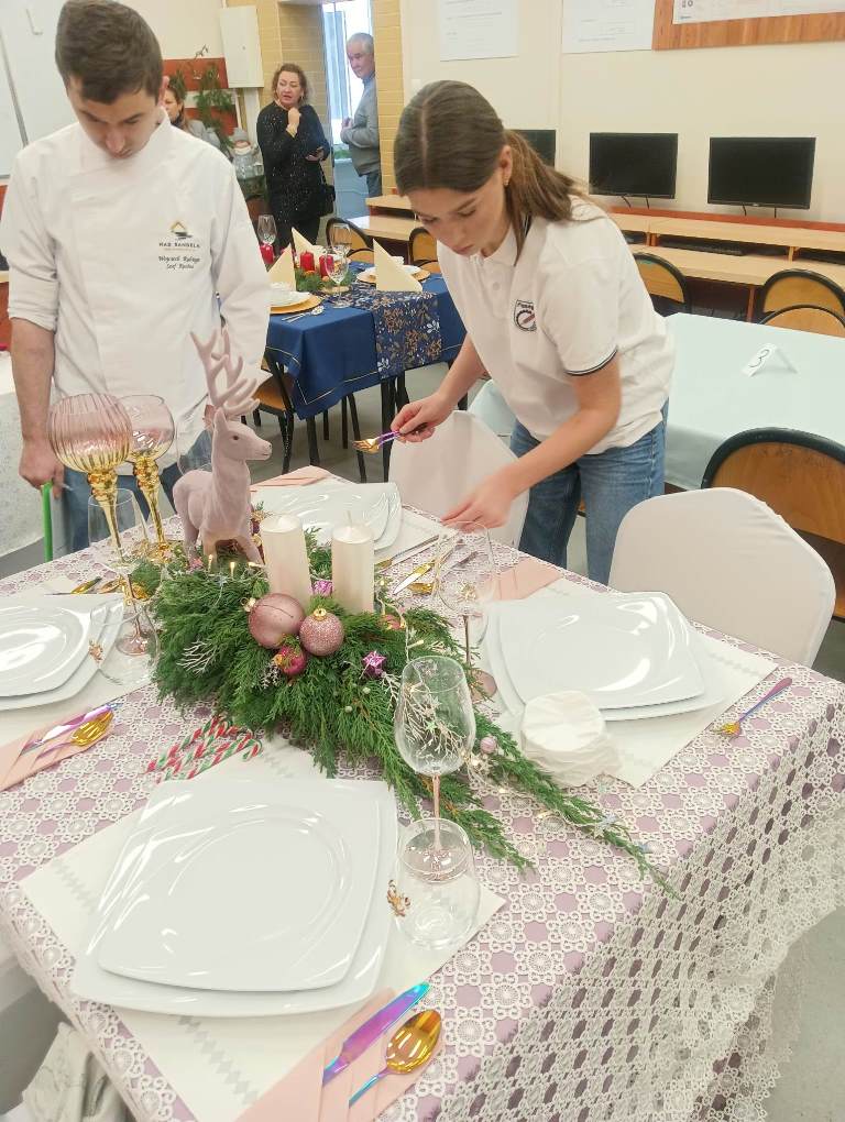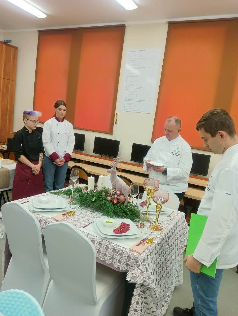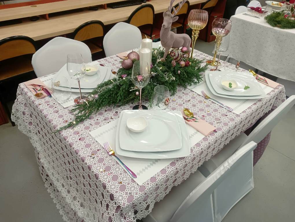 Regionalny konkurs „Na najpiękniejszy bożonarodzeniowy stół” odbył się w dniu 15.12.2022 r., a uczestniczące w nim uczennice Zespołu Szkół Ekonomicznych i Technicznych w Pasłęku z klasy IV kształcącej w zawodzie technik żywienia i usług gastronomicznych Wiktoria Świetlicka i Julia Potrapeluk zajęły I miejsce.