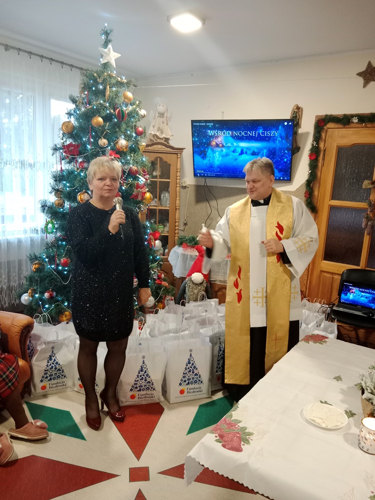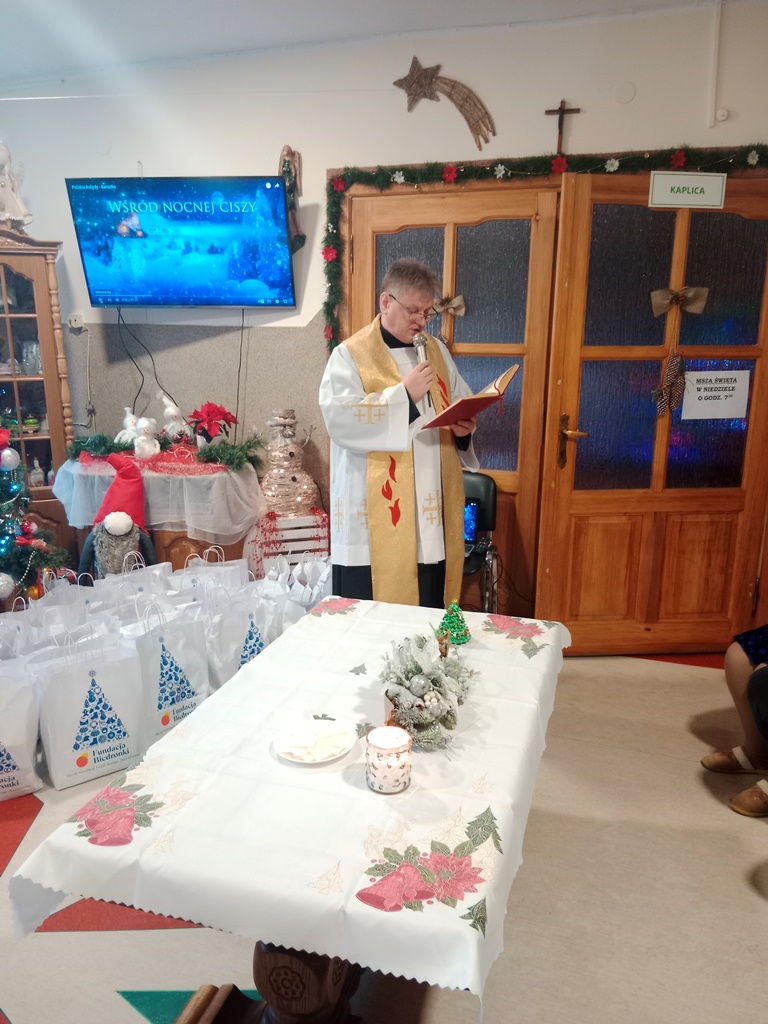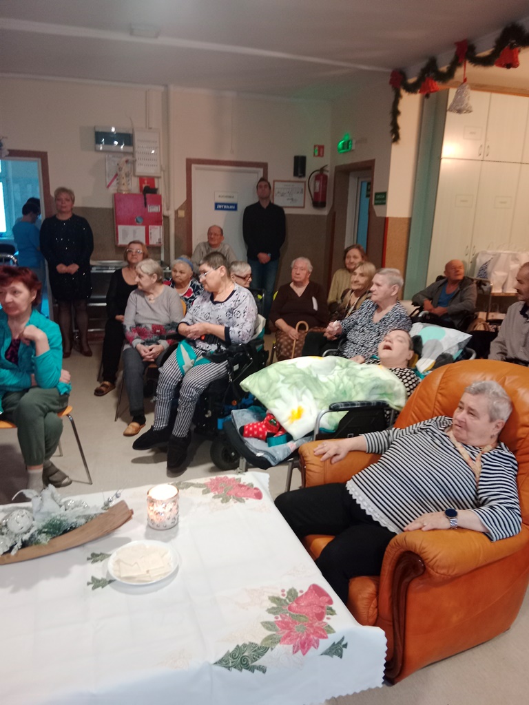 Podczas spotkania opłatkowego Mieszkańcy otrzymali prezenty co wywołało uśmiech na ich twarzach oraz wzruszenie, że są osoby, które o nich pamiętają. Tak miły gest pozostanie w pamięci naszych mieszkańców za co serdecznie dziękujemy.