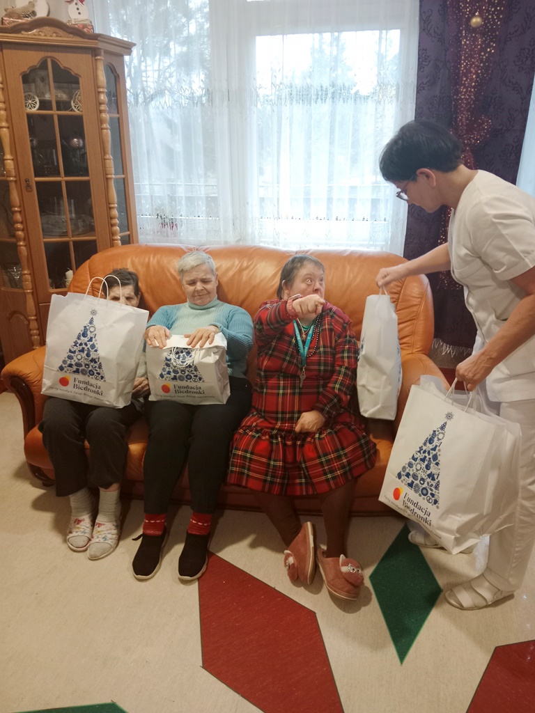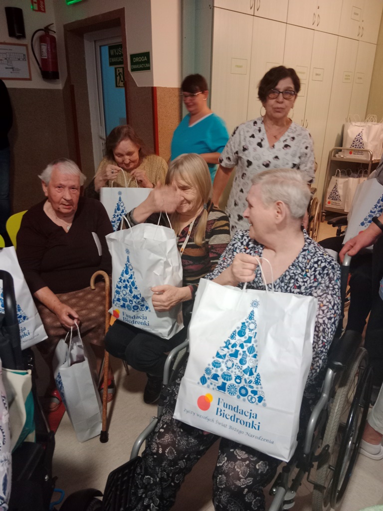 101 mieszkańców naszego Domu dostało świąteczne paczki od Fundacji Biedronki. Do programu „Radosne Święta z Fundacją Biedronki” zakwalifikowało się łącznie blisko 370 placówek, w tym nasza. Przebywa w nich ponad 30 000 podopiecznych. Wartość ufundowanych prezentów, które zawierają słodycze i kosmetyki, sięga 1,2 mln zł.