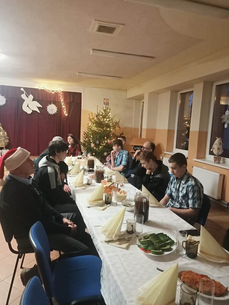 Społeczność Młodzieżowego Ośrodka Wychowawczego w Kamionku Wielkim spotkała się na wspólnej Wigilii. Grupa I przedstawiła nam opowieść pod tytułem " Cicha noc...jaki w tobie dzisiaj cud....", a nasza cudowna Pani psycholog grając na skrzypcach wplotła w scenografię piękne kolędy. Posiłki przygotowali nasi podopieczni pod czujnym okiem Pani Kingi. Była to okazja, aby siedząc przy stole, w odświętnie udekorowanej auli,