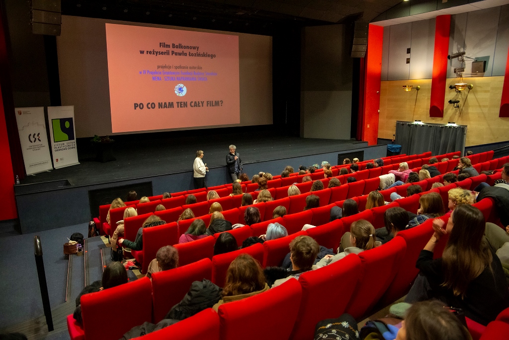 We wtorek, 7 lutego uczniowie naszej szkoły, wraz z nauczycielami, wzięli udział w projekcji filmu Pawła Łozińskiego pod tytułem The Balcony Movie/ Film Balkonowy, którą uświetnił nie kto inny jak sam reżyser i wykonawca dzieła.