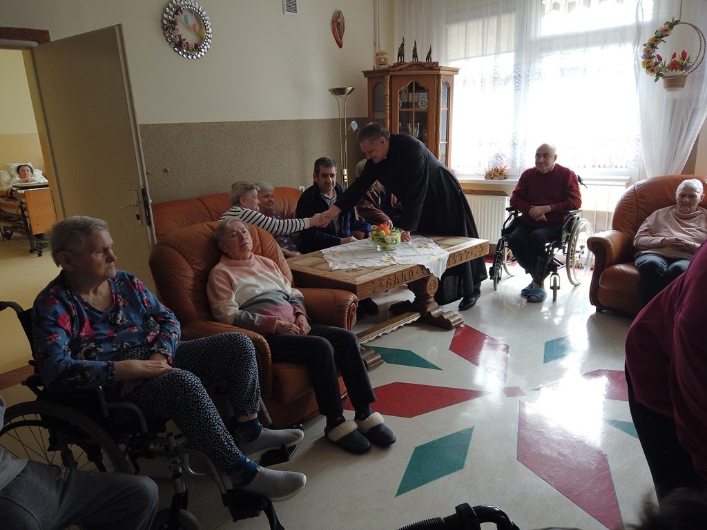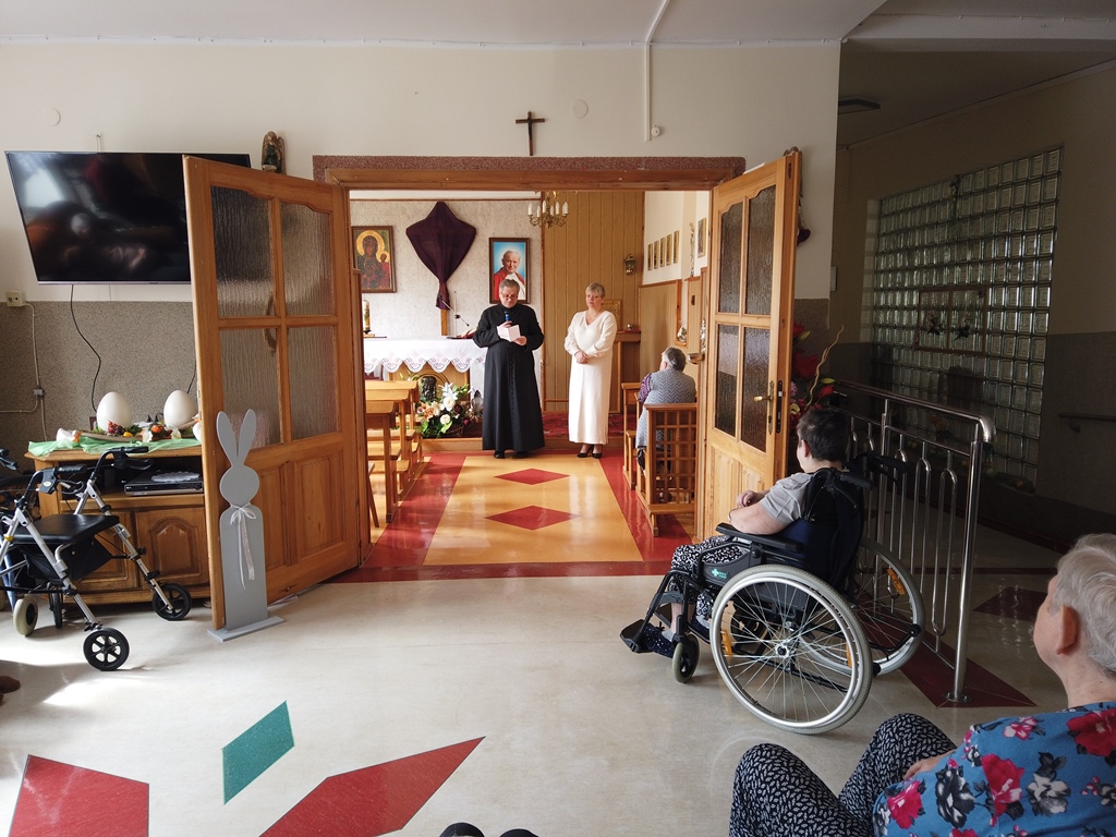 W dniu 7 kwietnia 2023 roku w Domu Pomocy Społecznej w Tolkmicku odbyło się spotkanie z okazji zbliżających się Świąt Wielkanocnych. Pani dyrektor Anna Kurszewska złożyła najserdeczniejsze życzenia mieszkańcom oraz pracownikom, życząc im aby te Święta Zmartwychwstania Pańskiego były pełne spokoju, radości, zdrowia. Życzenia złożył również ksiądz Andrzej życząc naszym podopiecznym i pracownikom wielu łask Bożych. Nie zabrakło też bez ciepłych słów i chwil wzruszeń.