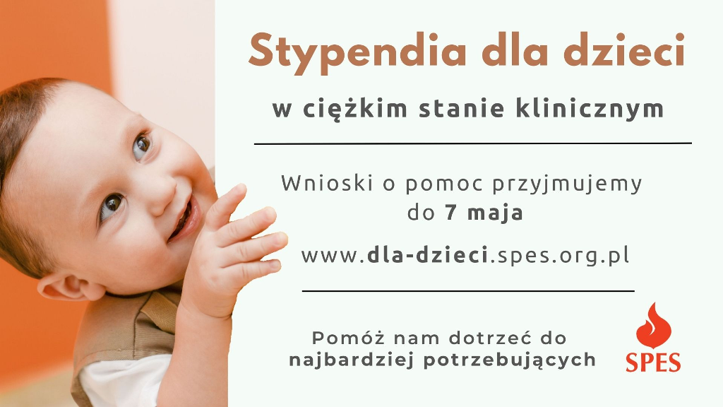 Powiatowe Centrum Pomocy Rodzinie w Elblągu informuje, iż Stowarzyszenie SPES ogłasza nabór wniosków o stypendia dla rodzin, które opiekują się w domu dzieckiem w ciężkim stanie klinicznym.