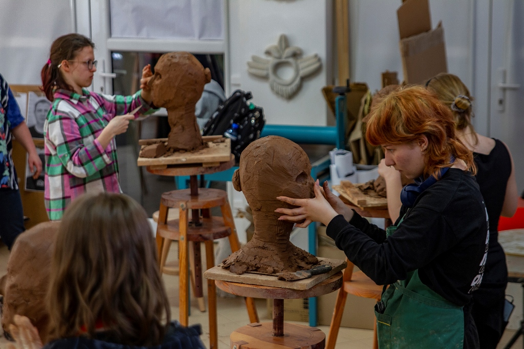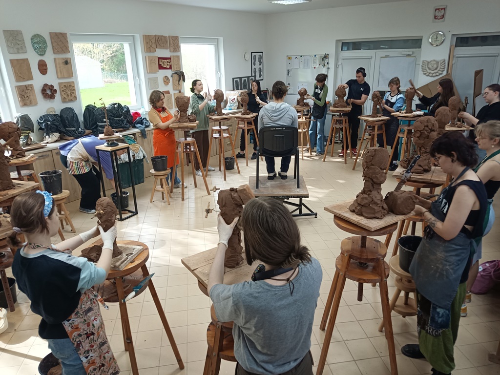 Praca warsztatowa pod okiem Mistrza - Rzeźbiarza, zaproszonego do naszej szkoły to same korzyści: wsłuchiwanie się w język prowadzącego, nowy dla naszych uczniów; praca pod presją czasu – bo tak czasem trzeba; prawdziwe oblicze wykonanej pracy – bo praca bez oddechu i drugiego podejścia do realizacji za jakiś czas - to wyzwanie. W końcu... to rozbudzanie w pasji do rzeźbiarskiego języka, i to jest najważniejsze.