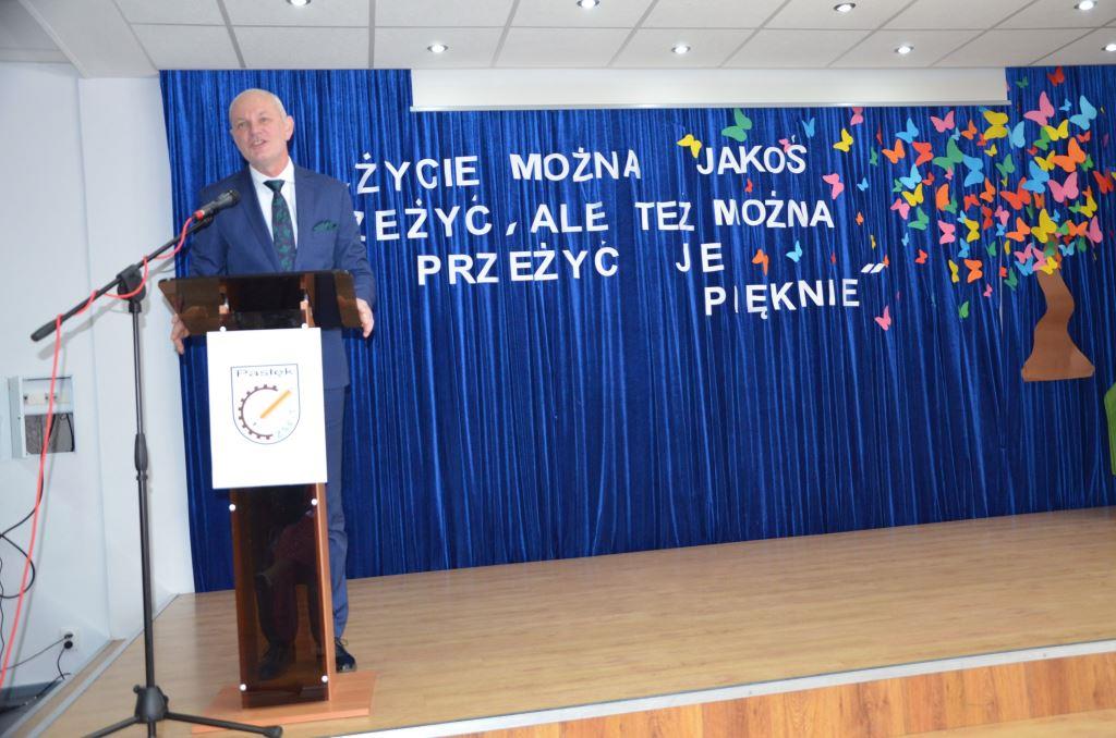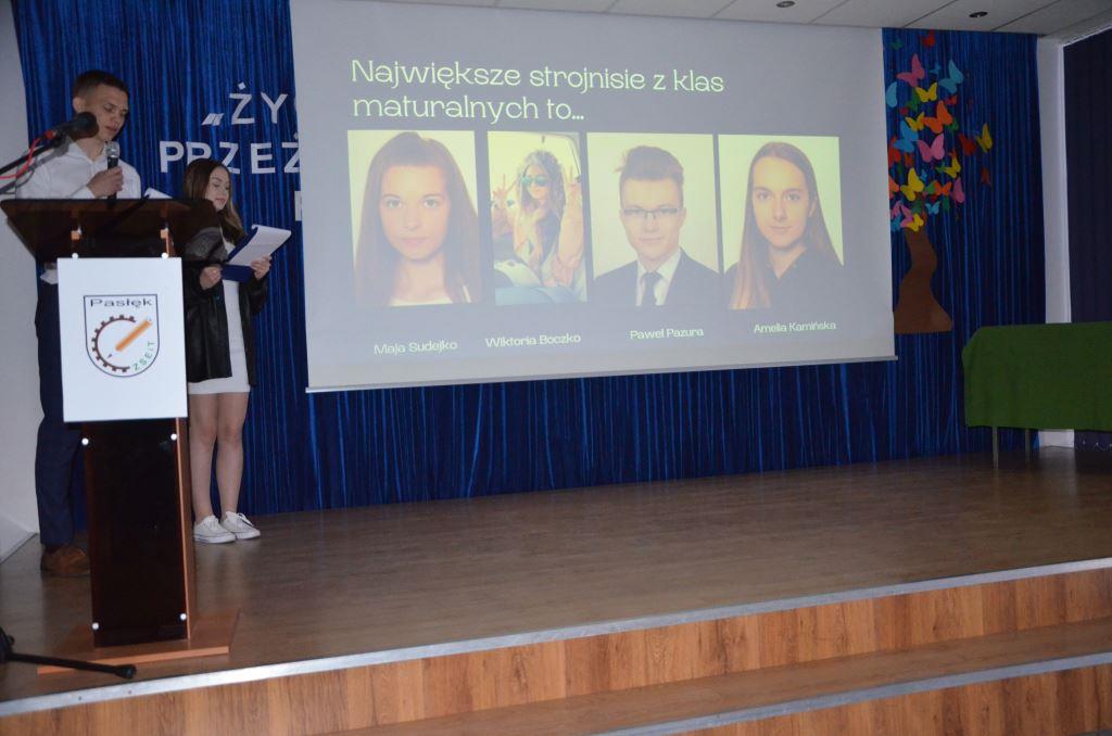 W części oficjalnej głos zabrał Dyrektor szkoły p. Marian Matuszczak. W swoim przemówieniu nawiązał do mijającego okresu w życiu absolwentów i szkolnych lat, które zostaną w ich pamięci na zawsze. Zwrócił uwagę na nadchodzące nowe wyzwania i trudne życiowe decyzje, a także podziękował absolwentom, którzy swoją postawą i osiągnięciami zasłużyli się dla szkoły. Głos zabrali również przybyli goście: Naczelnik Wydziału Promocji Powiatu, Edukacji, Kultury i Sportu p. Renata Perlińska i Zastępca Burmistrza Pasłęka p. Marek Sarnowski. Przemawiający wielokrotnie nawiązywali do motta uroczystości: „Życie można jakoś przeżyć, ale też można przeżyć je pięknie”. Uczniów kończących naukę w ZSEiT w Pasłęku pożegnały także wychowawczynie klas: p. Justyna Konopacka, p. Sylwia Szczęśniak i p. Aleksandra Daszkiewicz. Panie ze wzruszeniem podsumowały wspólnie spędzony czas ze swoimi wychowankami. Następnie wręczono absolwentom nagrody i wyróżnienia za najlepsze wyniki w nauce.