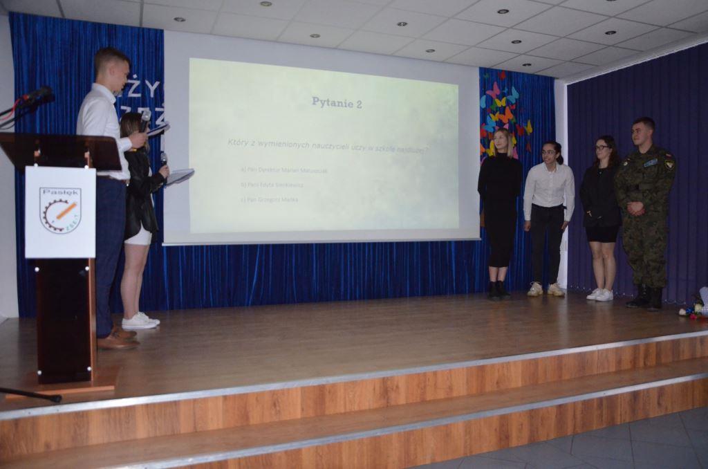 Społeczność uczniowska również pożegnała uczniów kończących szkołę. Przygotowała część artystyczną, za którą były odpowiedzialne klasy III OL-b i IV GT-p wraz z wychowawcami.
