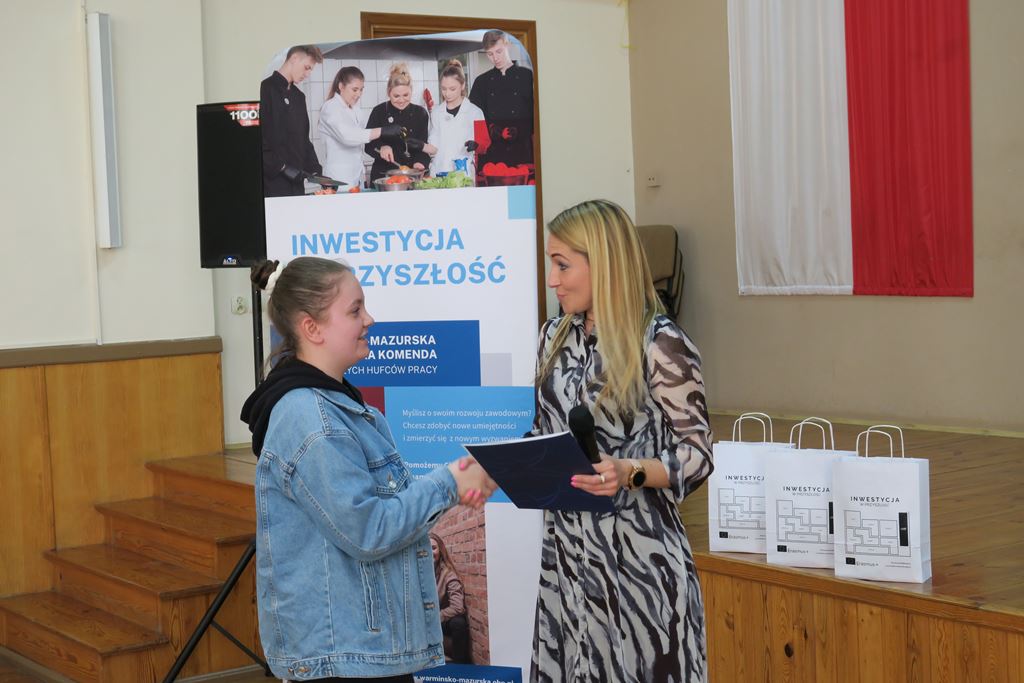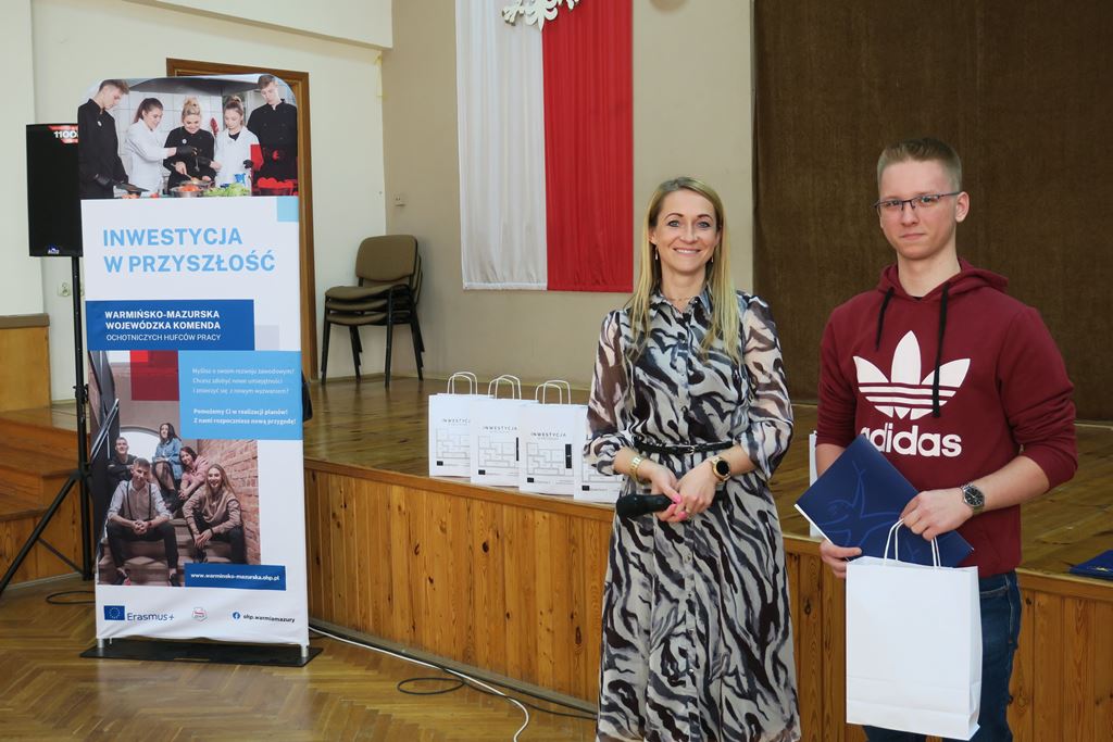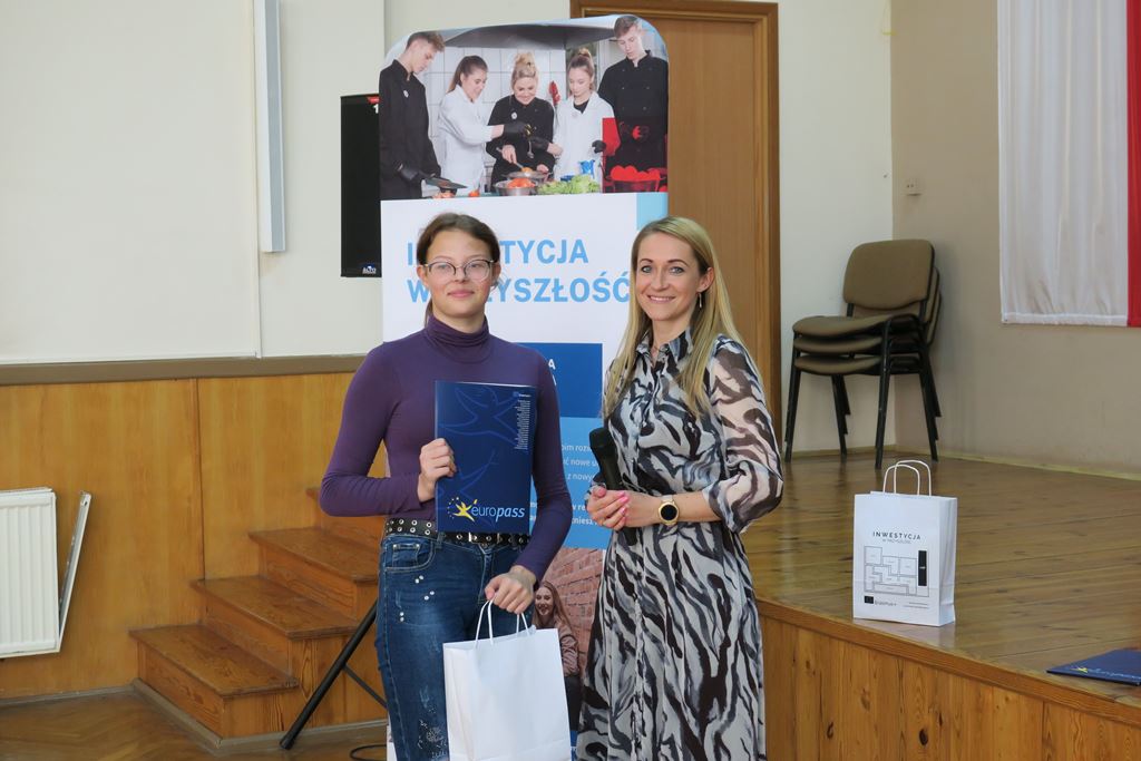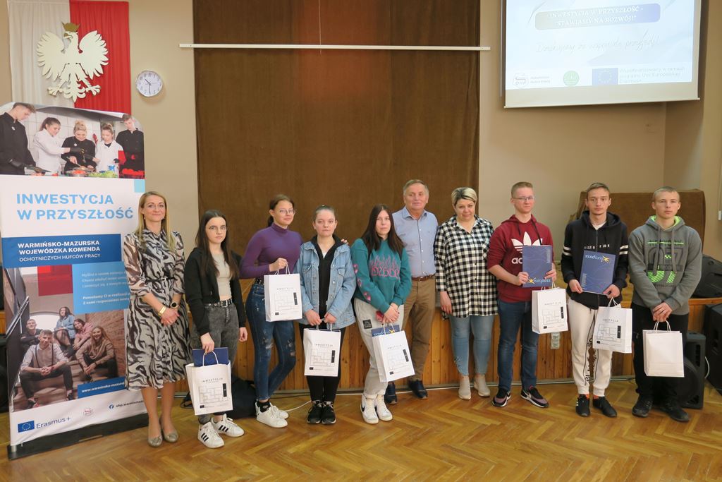 W ramach projektu „Inwestycja w przyszłość– stawiamy na rozwój” ośmioro uczniów klas II Branżowej Szkoły I Stopnia w Zespole Szkół w Pasłęku od 13 marca do 1 kwietnia 2023r. odbyło trzytygodniowe praktyki w Setubalu. Uczestnicy zagranicznych praktyk poszerzyli swoje umiejętności i kompetencje zawodowe, poznali język, kulturę, zwyczaje oraz zabytki Portugalii. 26 kwietnia w Zespole Szkół w Pasłęku odbyło się podsumowanie projektu realizowanego w ramach programu ERASMUS+. W spotkaniu uczestniczyli: koordynator projektu p. Barbara Leszczyńska, opiekun wyjazdu p. Waldemar Rywelski, kierownik OSiW p. Agnieszka Baranowska, kierownik szkolenia praktycznego p. Dorota Dragan, uczestnicy projektu oraz nauczyciele i uczniowie Szkoły Branżowej. Na spotkaniu uczeń kl. II A BS, Kamil Kowalczyk, podzielił sięwrażeniami z pobytu na stażu. Podczas uroczystości uczestnikom programu wręczono certyfikaty i drobne prezenty. Certyfikaty otrzymali: Kamil Kowalczyk i Dawid Wiśniewski w zawodzie murarz– tynkarz, Angelika Stachera i Wiktoria Dąbrowska w zawodzie kucharz, Weronika Stachera– cukiernik, Wiktor Chojnacki– sprzedawca, Amelia Chmielewska– fryzjer oraz Kacper Gawliński-mechanik pojazdów samochodowych.