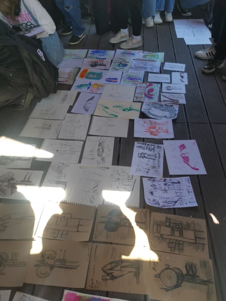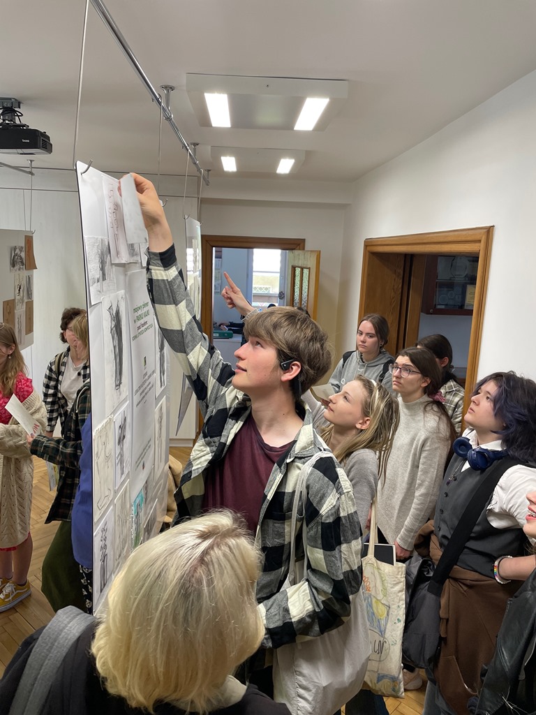 4 maja młodzi artyści mierzyli się z tematem architektonicznego kadru miejskiego. Bryła, przestrzeń, iluzja trójwymiarowości na płaszczyźnie, perspektywa i kompozycja to słowa klucze, które można było odnaleźć w uczniowskich pracach – niekiedy monochromatycznych, innym razem rozegranych z kolorem, ale też wrażliwych, przefiltrowanych przez ich własną emocjonalność i warsztat.