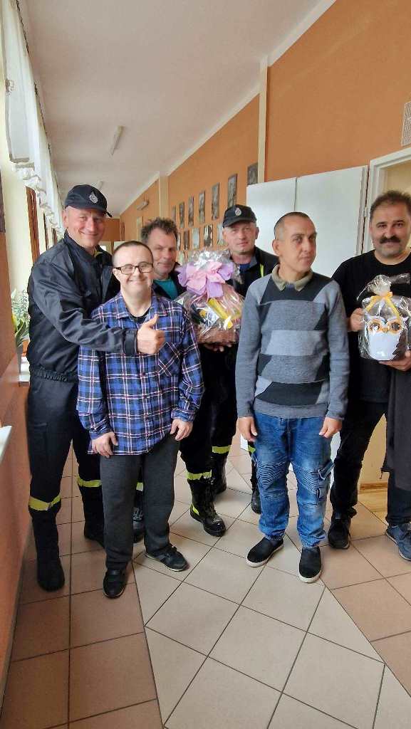 Próbna ewakuacja została przeprowadzona przez Ochotniczą Straż Pożarną z Weklic 16 maja 2023 roku w budynku Środowiskowego Domu Samopomocy w Przezmarku. Po sprawnym i bezpiecznym opuszczeniu placówki, uczestnicy i kadra zostali zapoznani z podstawowymi zasadami postępowania podczas pożaru. Ćwiczenia te miały na celu sprawdzenie warunków oraz organizacji ewakuacji przy zachowaniu procedur zawartych w Instrukcji Bezpieczeństwa Pożarowego. Założenia planu ewakuacji zostały sprawnie zrealizowane, co świadczy o dobrym przygotowaniu i samodyscyplinie. Na terenie ŚDS został rozwinięty wąż strażacki, z którego uczestnicy mieli możliwość próby gaszenia pożaru przy głośnym dźwięku syreny strażackiej. Wywołanie próbnego alarmu pozwoliło na ocenę reakcji pracowników i uczestników w sytuacji zagrożenia. Po skończonej ewakuacji wszyscy zrobiliśmy sobie pamiątkowe zdjęcia. Dziękujemy bardzo Druhom z OSP Weklice za pomoc i współpracę.