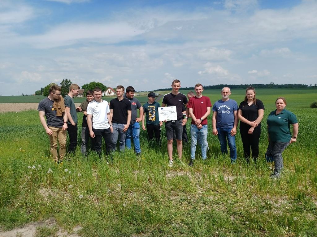 W dniu 23.05.2023 r. jedenastu uczniów czwartej klasy z Zespołu Szkół Ekonomicznych i Technicznych w Pasłęku kształcących się w zawodzie technik agrobiznesu wzięło udział w wyjazdowym szkoleniu dotyczącym ekologicznej uprawy pszenicy ozimej orkisz.