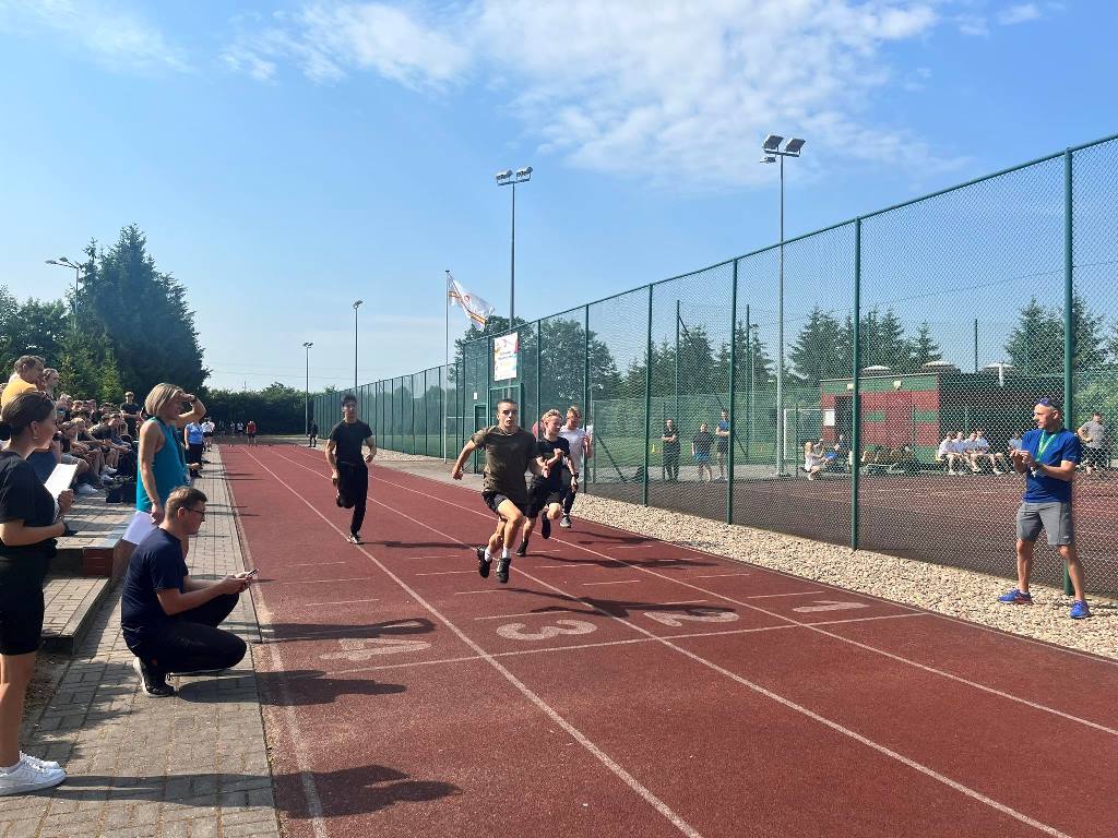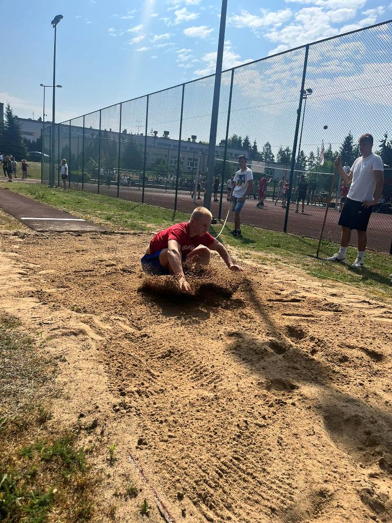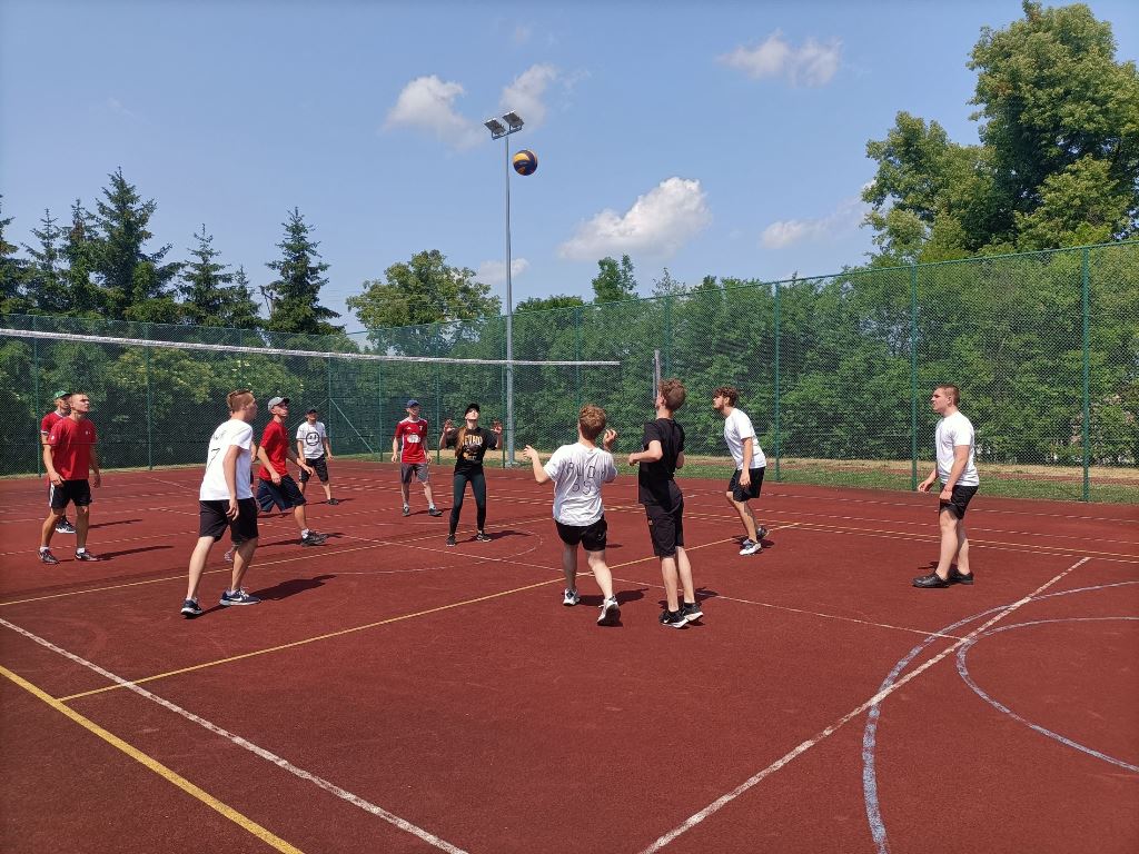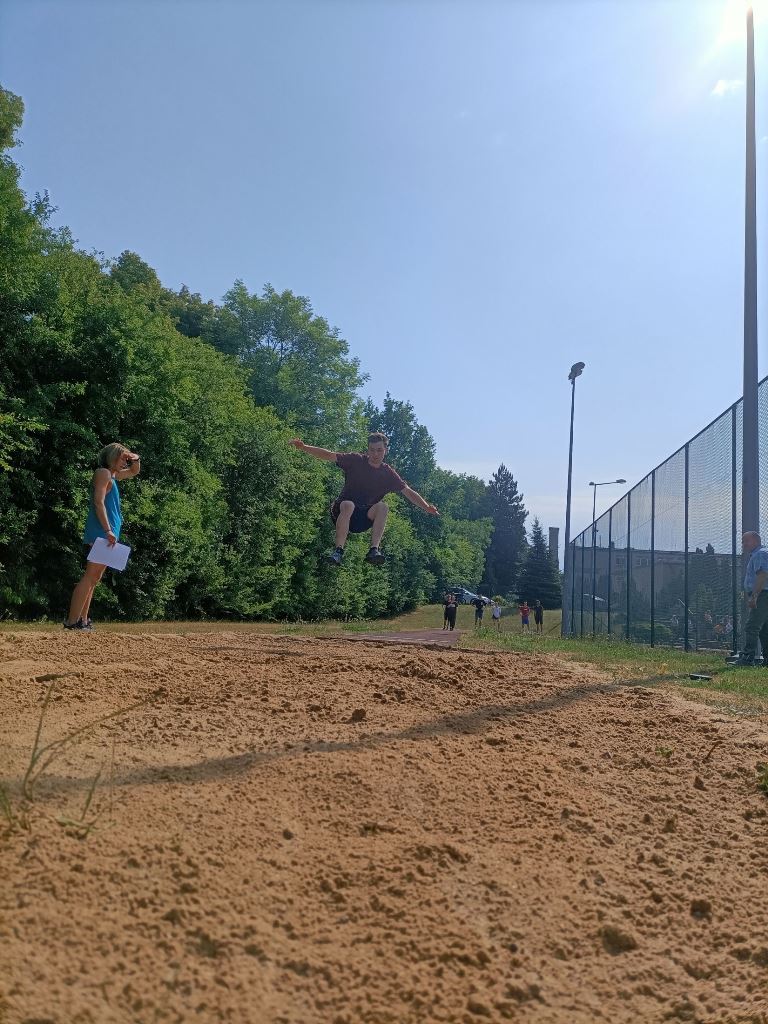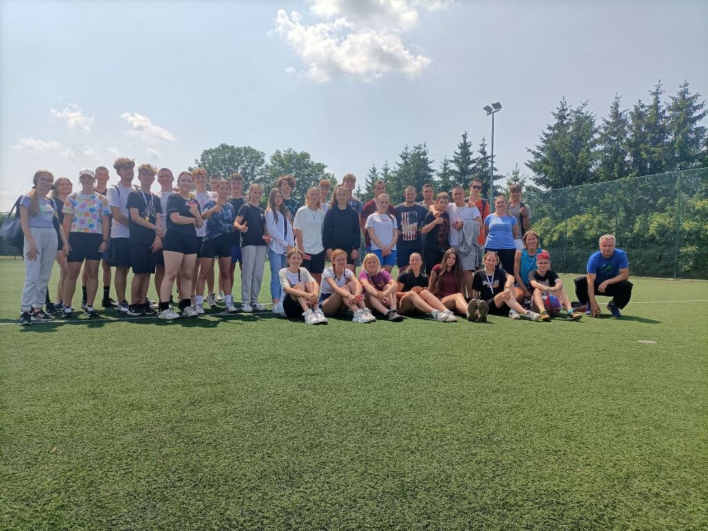 20 czerwca 2023 r. po raz pierwszy w ZSEiT, z inicjatywy Samorządu Uczniowskiego, odbył się szkolny Dzień Sportu. Zespoły klasowe zmagały się w grze zespołowej, rozgrywając mecze piłki siatkowej, natomiast pozostali uczniowie brali udział w konkurencjach indywidualnych, tj: bieg na 60m, skok w dal, rzut kaloszem. Do rozgrywek w piłce siatkowej zgłosiły następujące klasy: 1 SB/MB; 4AT/ ET po SP; 3 ST/ET; 3XB; III LO b; 1LO; 3 GT; 3 LO a; 4 GT po SP; 2 LO; 2 GT; 1 GT; 1 ET/AT; 3SB. Po ciężkich i wyczerpujących zmaganiach I miejsce zajęła klasa 3 GT, II miejsce klasa 3 LO b oraz III miejsce klasa 3AT/ET. Natomiast w biegu na 60m niepokonani byli - Dawid Kruk i Kinga Wieczorek. Najlepszymi skoczkami w dal okazali się: Fabian Słowikowski i ponownie Kinga Wieczorek. W rzucie kaloszem najlepsi zawodnicy to: Aniela Wieczorek i Mateusz Koladyński. Na zakończenie imprezy sportowej dyrekcja, wychowawcy i nauczyciele wykonali strzały na bramkę. Zwycięzcą został pan Robert Koszyk, ale nie było to łatwe zadanie, bo tuż za nim, „depcząc mu po piętach” byli: pani Małgorzata Cytrycka i pan mjr Bolesław Czechowski. Na zwycięzców czekały nagrody, a wszyscy uczestnicy otrzymali słodki upominek. Pogoda była słoneczna. Mimo upalnego dznia wszyscy dali radę i świetnie się bawili.