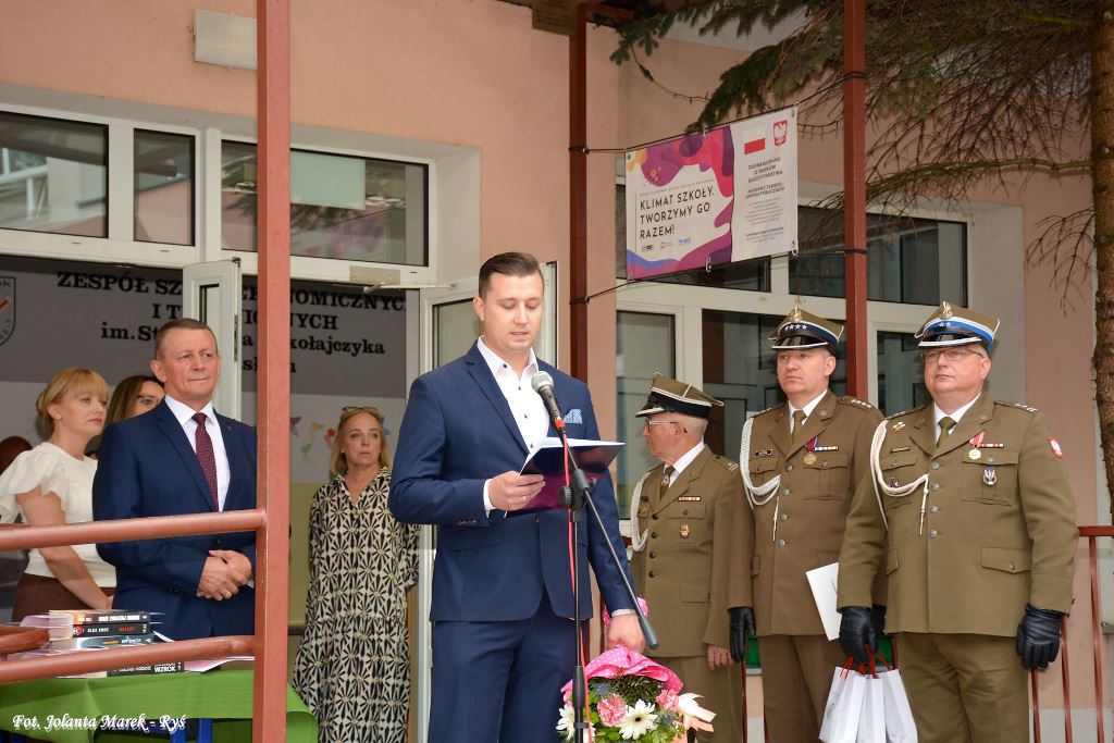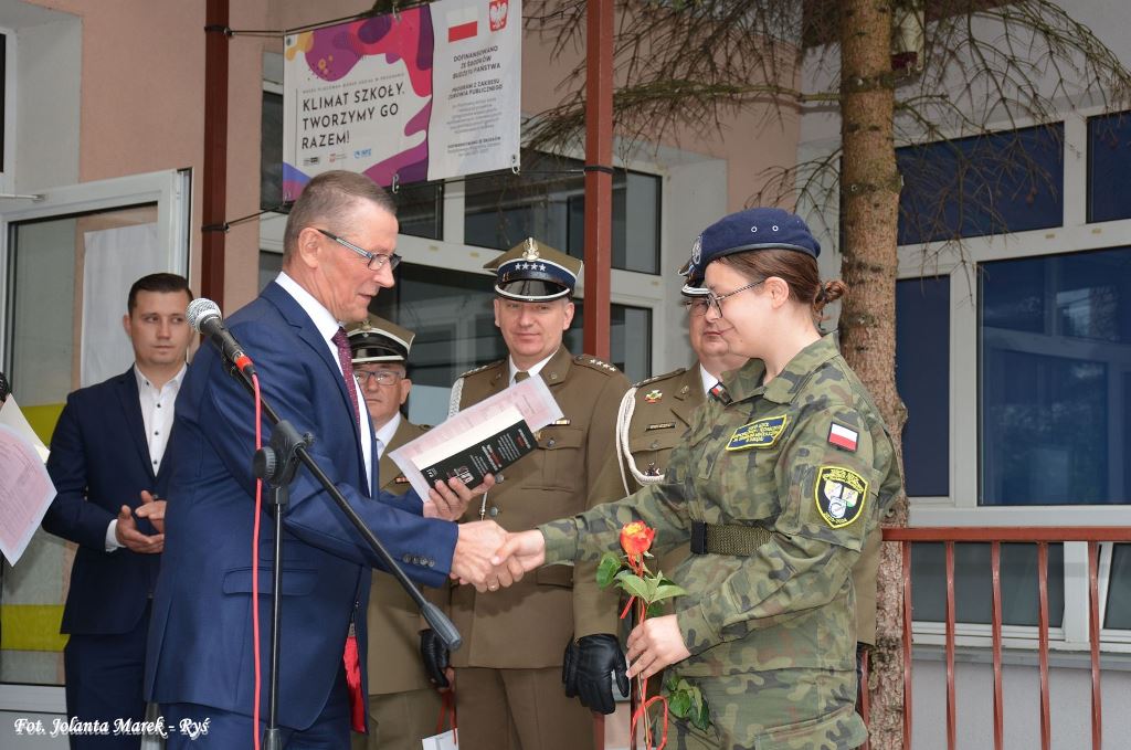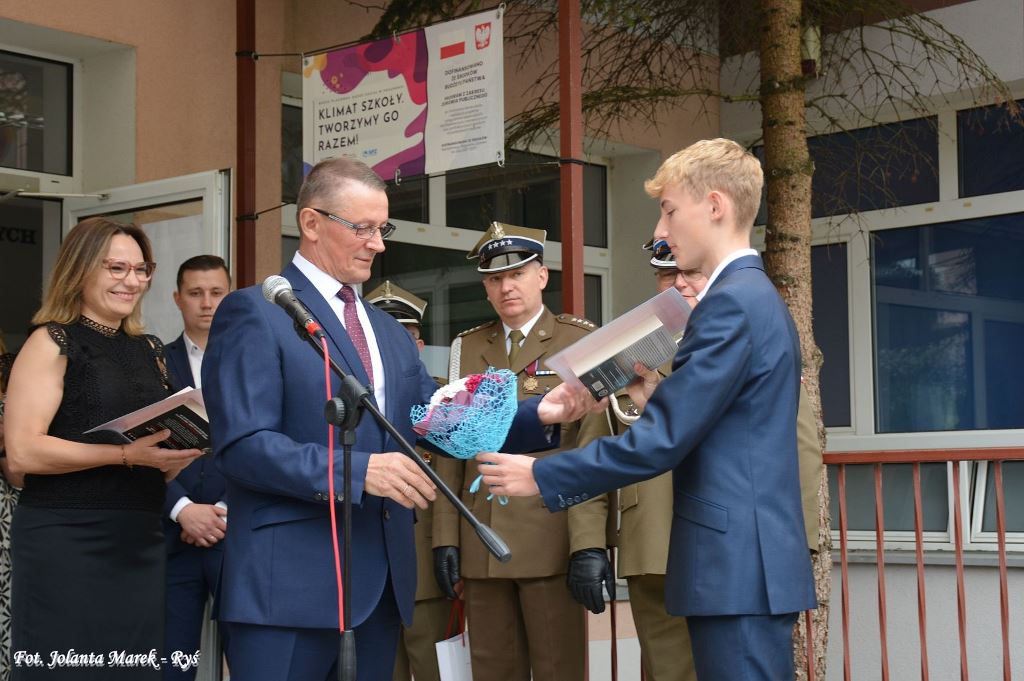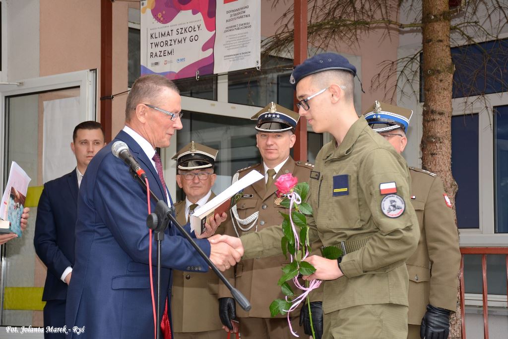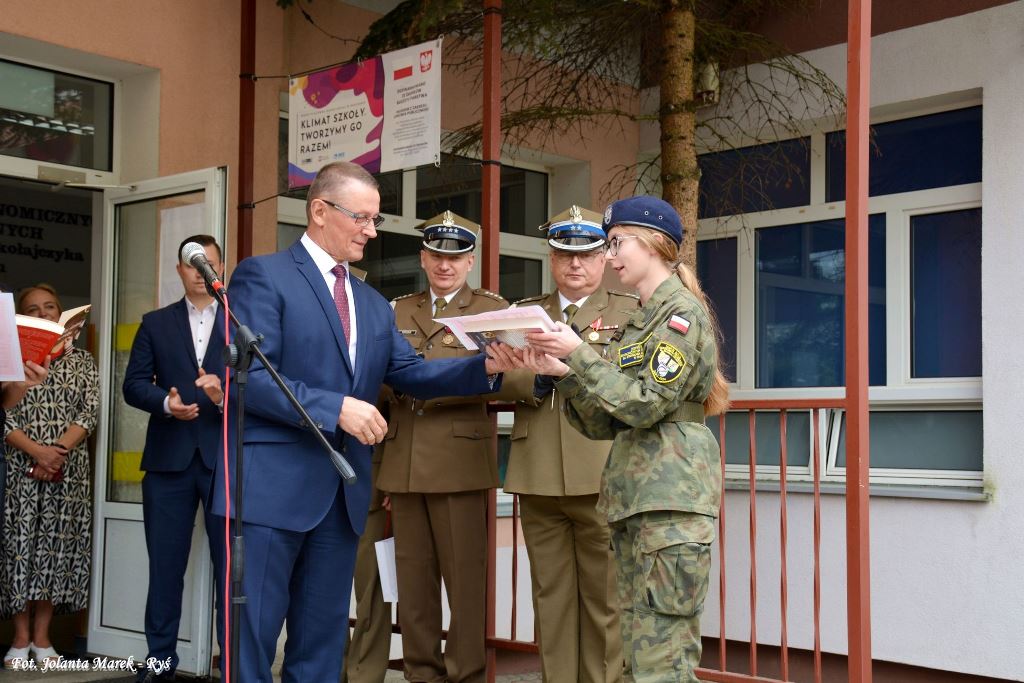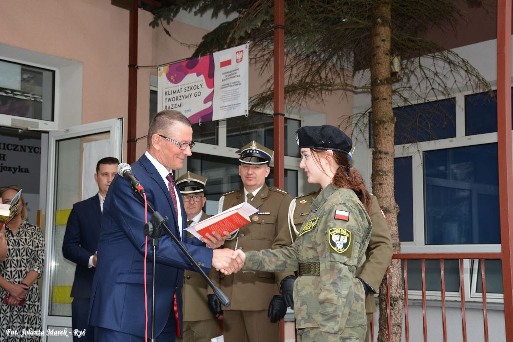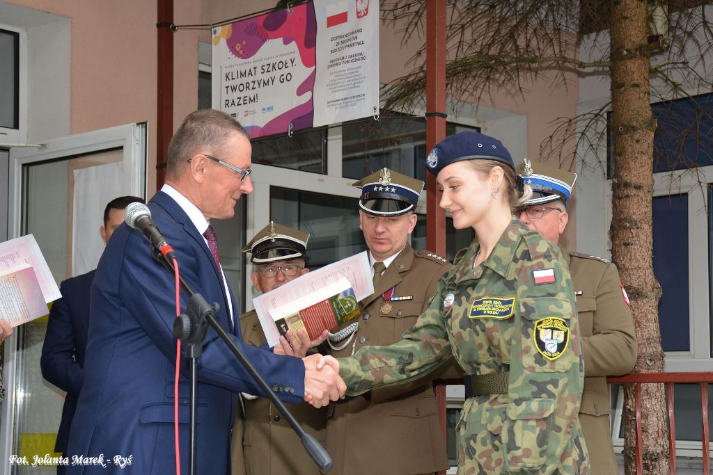Uroczystość zaszczycili swoją obecnością: przedstawiciel Starostwa Elbląskiego Grzegorz Dawidziuk, ppłk Jacek Wieliczko - szef Wojskowego Centrum Rekrutacji i kpt. Mirosław Kruba - szef Selekcji Rekrutacji oraz przewodnicząca Rady Rodziców Ewa Błachnio-Semkiw.