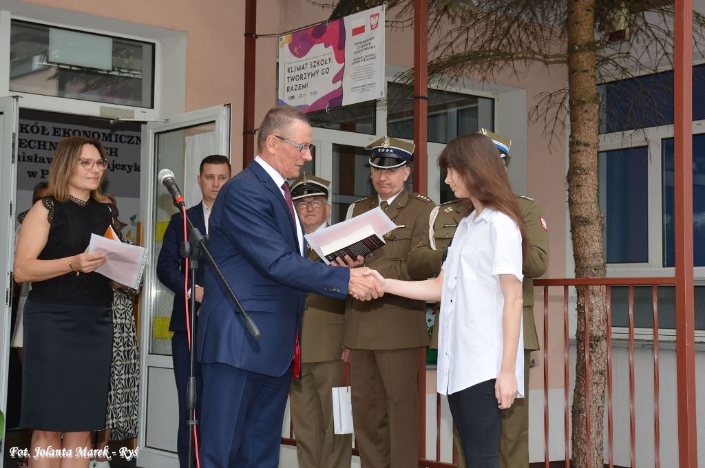 Na specjalne wyróżnienie zasłużył tegoroczny absolwent szkoły, uczeń IV klasy technikum kształcącego w zawodzie technik żywienia i usług gastronomicznych - Bartosz Jarzęcki, który otrzymał tytuł Prymusa Szkoły oraz stypendium Starosty Elbląskiego.