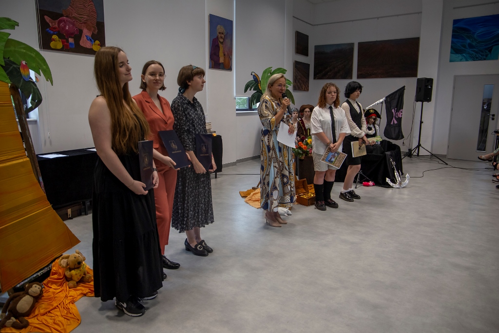 23 czerwca 2023 odbyło się uroczyste zakończenie roku szkolnego 2022-2023 w murach Liceum Sztuk Plastycznych w Gronowie Górnym. Organizacja uroczystości zakończenia roku przypadła w tym roku klasie 1b, która zadbała o prawdziwie piracki klimat. Po przywitaniu obecnych przemawiała Dyrektor Szkoły Pani Krystyna Brinkiewicz, życząc odpoczynku i dziękując wszystkim pracy w tym roku szkolnym. Ciepłych słów udzieliła również Naczelnik Wydziału Promocji Powiatu, Edukacji, Kultury i Sportu w Starostwie powiatowym w Elblągu Pani Renata Perlińska, która wręczyła stypendia dla absolwentów Liceum Plastycznego.