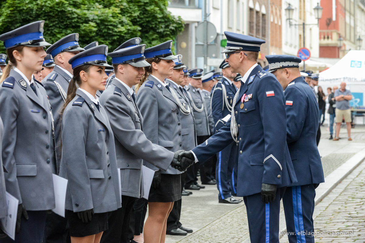 Awanse na kolejne stopnie służbowe i odznaczenia odebrali wczoraj (19.07) policjanci z Komendy Miejskiej Policji w Elblągu. W tym roku pierwsze w województwie warmińsko-mazurskim obchody odbywały się właśnie w Elblągu.