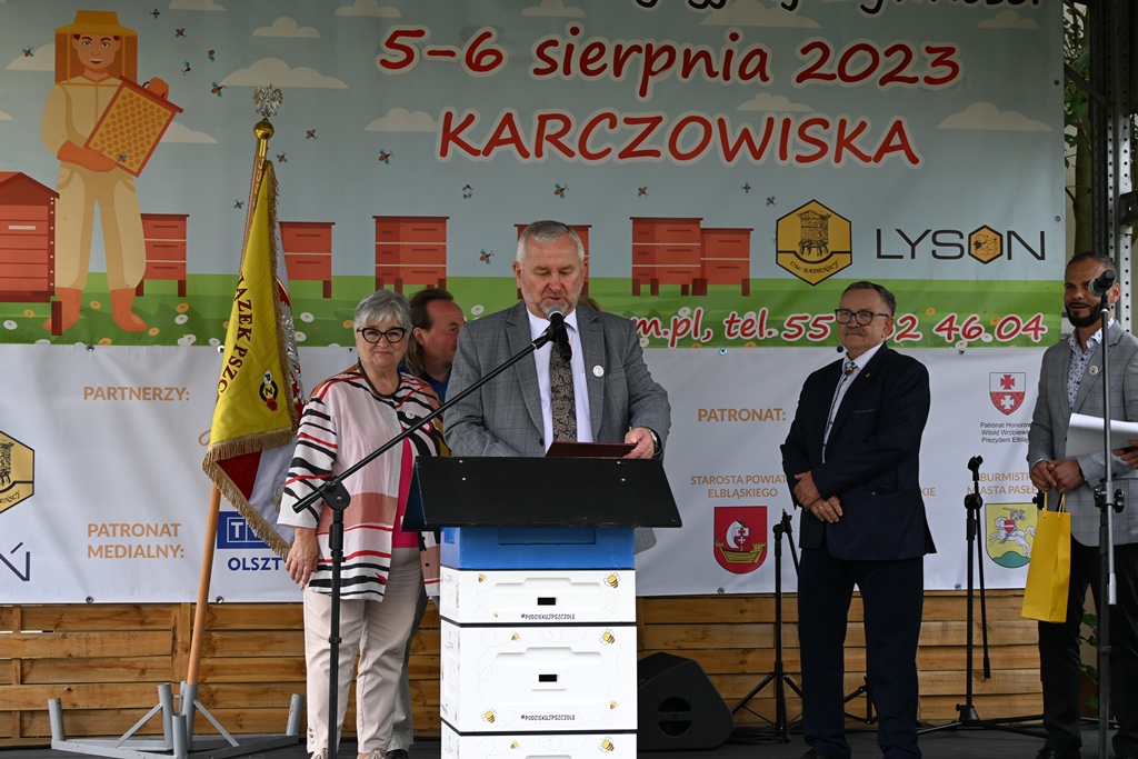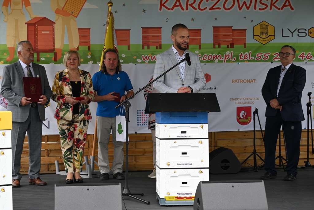Podczas uroczystości Starosta Elbląski Maciej Romanowski wraz z Przewodniczącą Rady Powiatu w Elblągu Genowefą Kwoczek wręczyli Prezesowi Regionalnego Związku Pszczelarzy w Elblągu Waldemarowi Badeńskiemu Honorową Odznakę Zasłużonego dla Powiatu Elbląskiego. Ta Odznaka jest uhonorowaniem całokształtu pracy Pana Badeńskiego w upowszechnianie i rozwój pszczelarstwa. Jest także wyróżnieniem za wybitne osiągnięcia przynoszące znaczące korzyści dla rozwoju Powiatu Elbląskiego, w dziedzinie gospodarczej . Wnioskodawcą nadania Odznaki był Wójt Gminy Gronowo Elbląskie Marcin Ślęzak.