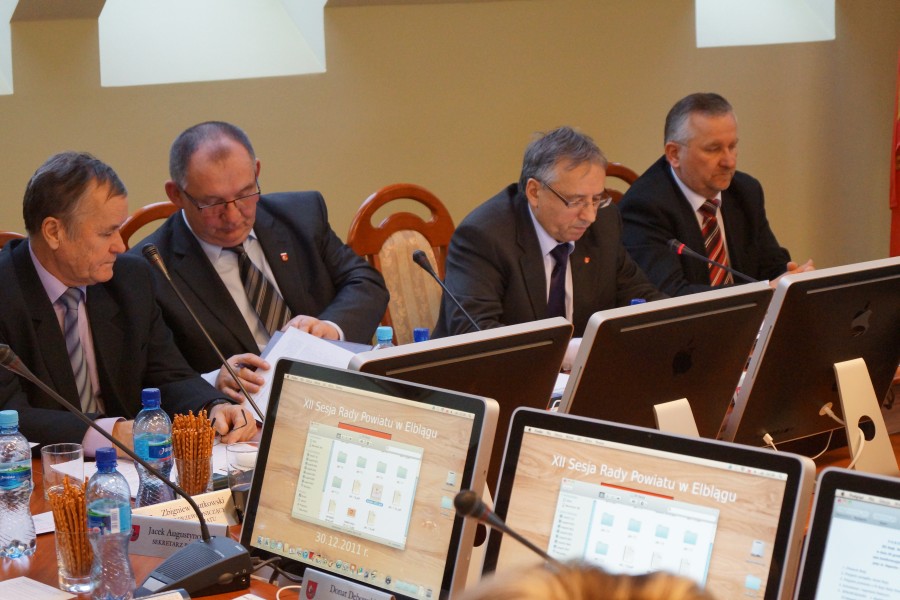 XII sesja Rady Powiatu w Elblągu odbyła się 30 grudnia, a jej najważniejszym punktem było uchwalenie budżetu powiatu na rok 2012 oraz Wieloletniej Prognozy Finansowej na lata 2012-2029. Obie uchwały radni przyjęli jednogłośnie.