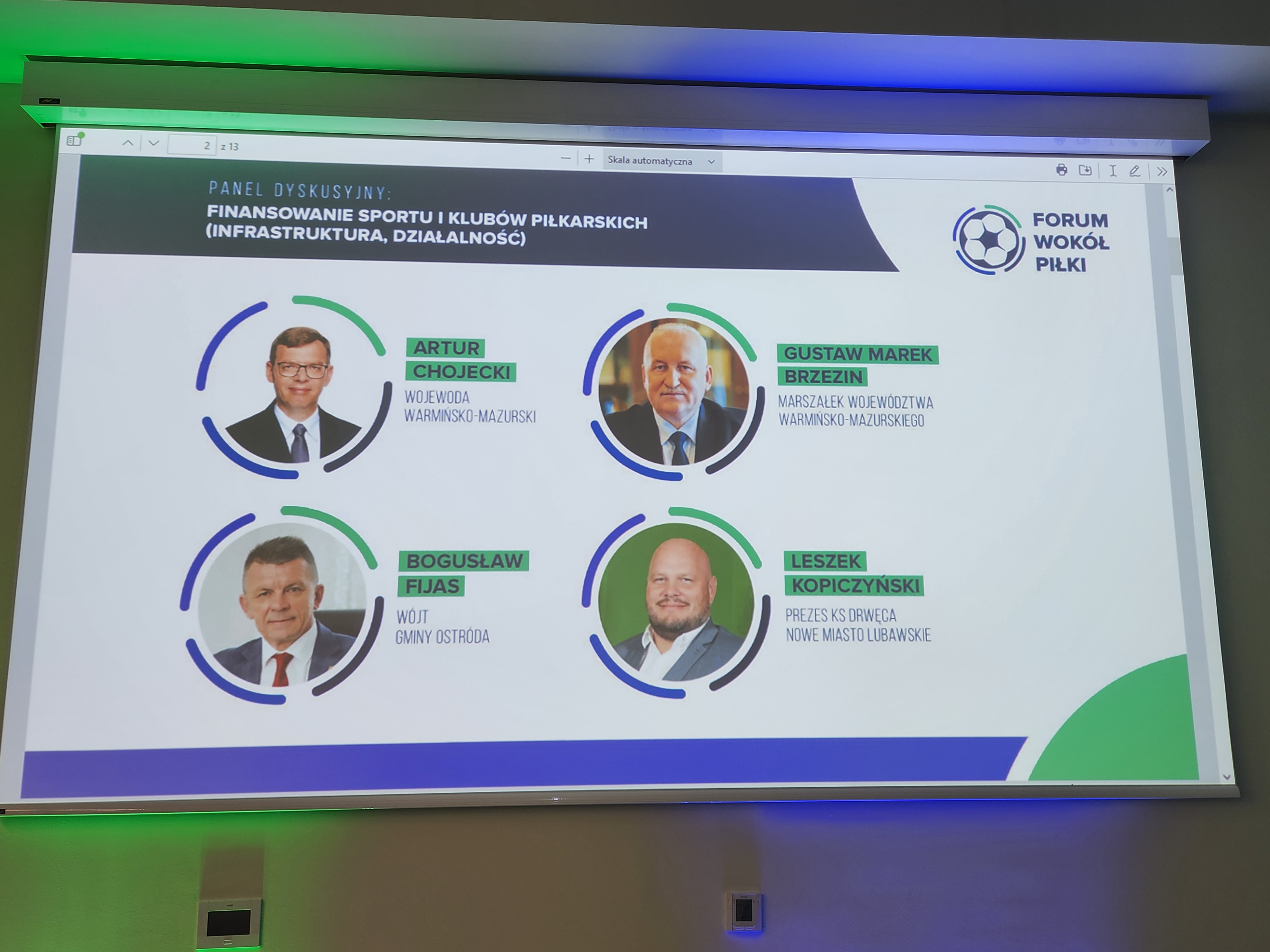 W dniu 29 września 2023 r. w Olsztyńskim Parku Naukowo-Technologicznym, odbyła się pierwsza edycja Konferencji „Forum Wokół Piłki”. Głównym organizatorem wydarzenia był Warmińsko-Mazurski Związek Piłki Nożnej, a Współorganizatorem Samorząd Województwa Warmińsko-Mazurskiego. Patronat honorowy nad wydarzeniem objął Wojewoda Warmińsko-Mazurski Artur Chojecki, Marszałek Województwa Warmińsko-Mazurskiego Gustaw Marek Brzezin oraz Polski Związek Piłki Nożnej. Konferencja podzielona była na trzy specjalne bloki tematyczne: finansowanie sportu i klubów piłkarskich (infrastruktura, działalność), rola sportu i klubów piłkarskich w budowaniu i rozwoju lokalnej społeczności oraz panele dyskusyjne z elementami targów i networkingu. Oprócz prelegentów można było spotkać blisko 200 uczestników z ok. 70 miejscowości z województwa warmińsko-mazurskiego, m.in. przedstawicieli lokalnych samorządów (w tym osoby odpowiedzialne za sport),przedstawicieli klubów, przedstawicieli sponsorów klubów,przedstawicieli firm świadczących usługi dla środowiska sportowego (np. renowacje boisk, sprzęt sportowy). W trakcie prelekcji swoimi cennymi uwagami podzielili się eksperci i prelegenci, którzy mają doświadczenie w zdobywaniu środków finansowych z samorządów lokalnych, środków ministerialnych czy Funduszy Europejskich. Podczas sympozjum wymieniono poglądy na temat wielostronnej i bezpośredniej współpracy samorządów i klubów piłkarskich, związanej z rozwojem i udostępnianiem sportowej infrastruktury, rozwijającej się w ostatnich latach do poziomu wywierającego istotny wpływ na społeczności lokalne oraz inspiracjami i propagowaniem rozwiązań związanych ze skutecznym pozyskiwaniem innych inwestycji, nawiązywaniem kontaktów, zrozumieniem potrzeb oraz budowaniem dobrego klimatu wokół szeroko pojętej „piłki nożnej” na Warmii, Mazurach i Powiślu.