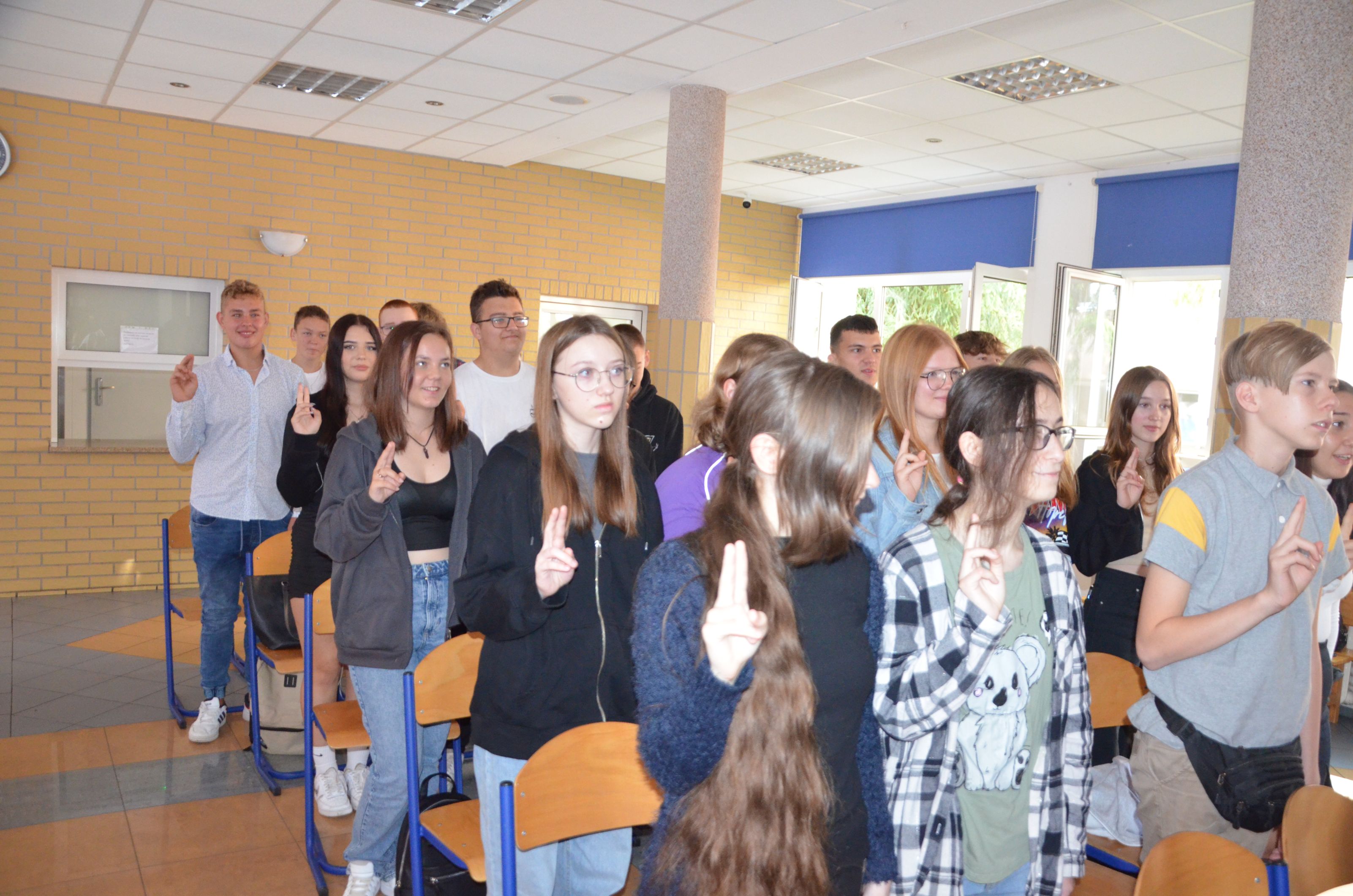 Uczniowie, wypowiadając słowa przysięgi, stali się częścią szkolnej społeczności oraz zobowiązali się do przestrzegania zasad i godnego reprezentowania szkoły.