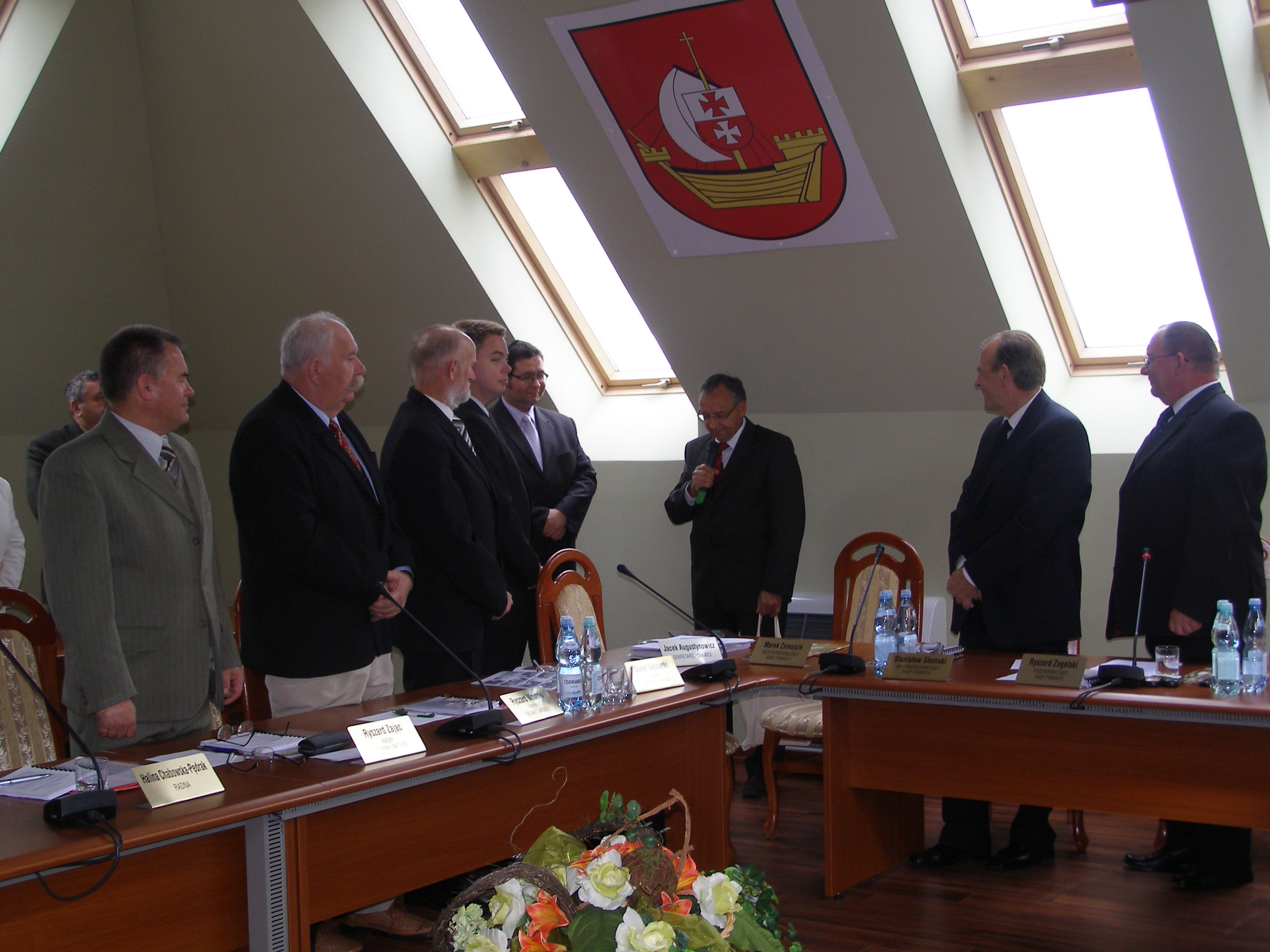 Radni powiatowi wysłuchali informacji Wojewódzkiego Inspektoratu Ochrony Środowiska w Olsztynie o stanie środowiska na obszarze powiatu elbląskiego w 2007 roku oraz analizy i oceny struktury bezrobocia na terenie powiatu elbląskiego za okres 6 miesięcy br., który przedstawiła dyrektor PUP w Elblągu Iwona Radej. Radnipowołali Józefa Szymczuka na Przewodniczącego Komisji Rewizyjnej.Podjęli również uchwały w sprawie zatwierdzenia do realizacji projektów, które przedłożył powiat elbląski w ramach Priorytetu IXDziałania 9.2 oraz Działania 9.1.2 Programu Operacyjnego Kapitał Ludzki łącznie 6 projektów).W pierwszej części obrad radnych wziął udział Starosta Mrągowski Dominik Damian Tarnowski, który wręczył Staroście Elbląskiemu okolicznościowy medal z okazji 190 rocznicy powstania powiatu mrągowskiego. Starosta mrągowski honoruje nimi wybitnych mieszkańców powiatu oraz ludzi o zasłużonych w pracyna rzecz samorządu.