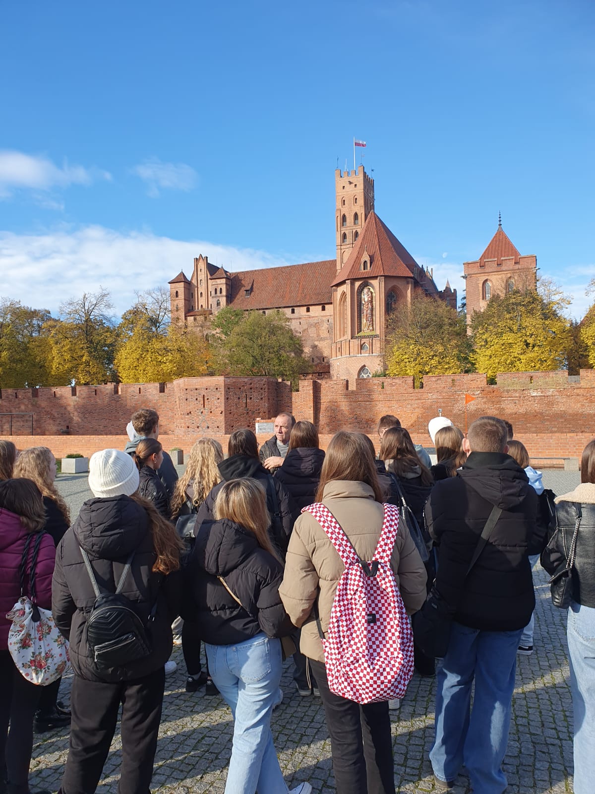Odwiedzili Muzeum Zamkowe w tym mieście - największy ceglany gotycki zamek na świecie, a jednocześnie przykład średniowiecznej architektury obronnej. Został on wpisany w 1997r. na Listę Światowego Dziedzictwa UNESCO. Młodzież zwiedziła cały zamek w ramach trasy historycznej, wsłuchiwała się w historię zakonu krzyżackiego i losy samej siedziby wielkiego mistrza. Poznała tajniki zamku wysokiego, poszukując charakterystycznych elementów architektury gotyckiej.