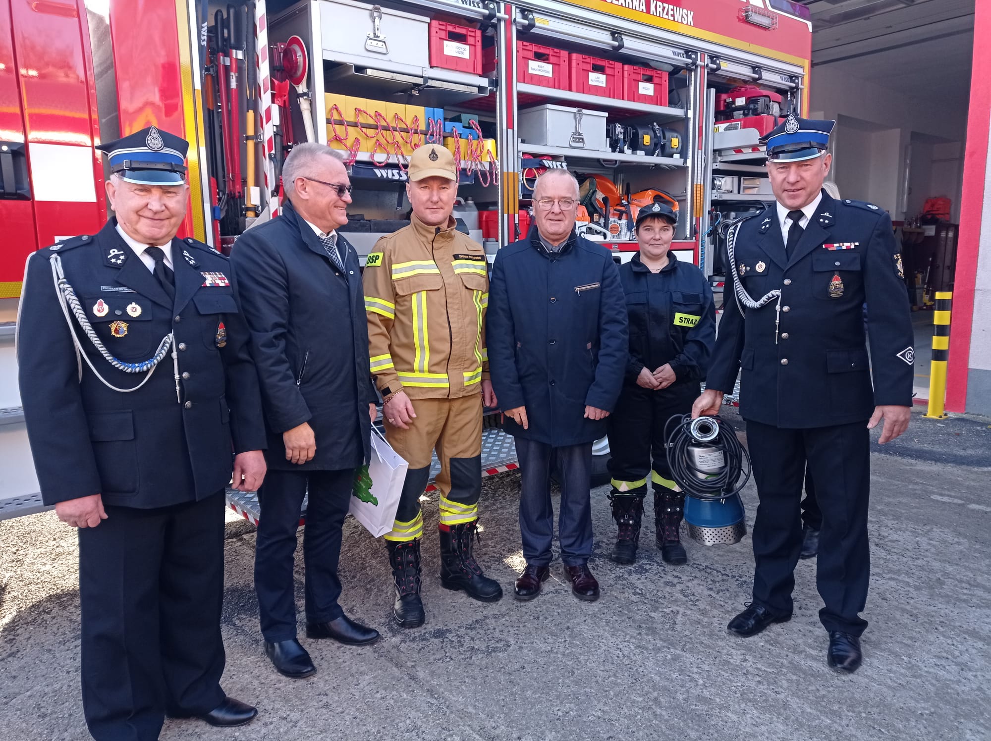 W dniu 10 listopada 2023 r. w Ochotniczej Straży Pożarnej w Krzewsku odbyło się uroczyste przekazanie pompy zatapialnej Evac, na zakup której Powiat Elbląski udzielił jednostce dofinansowania na poziomie 50 %.