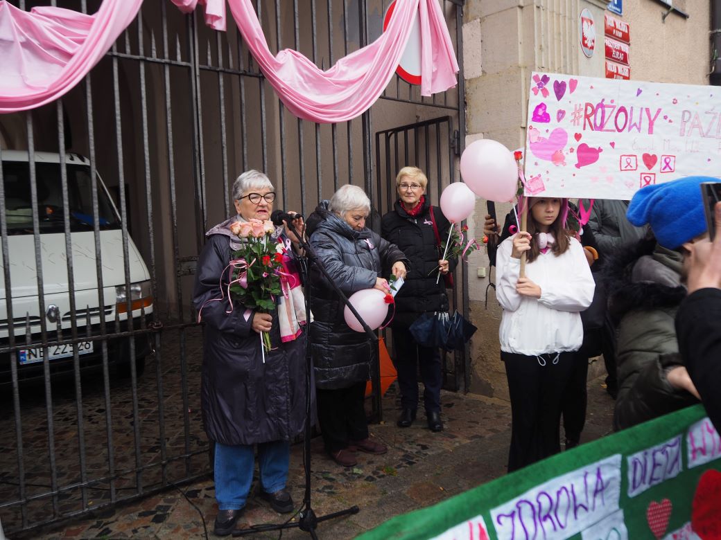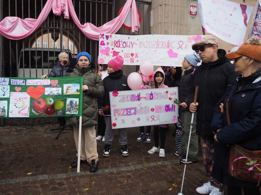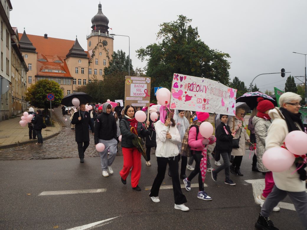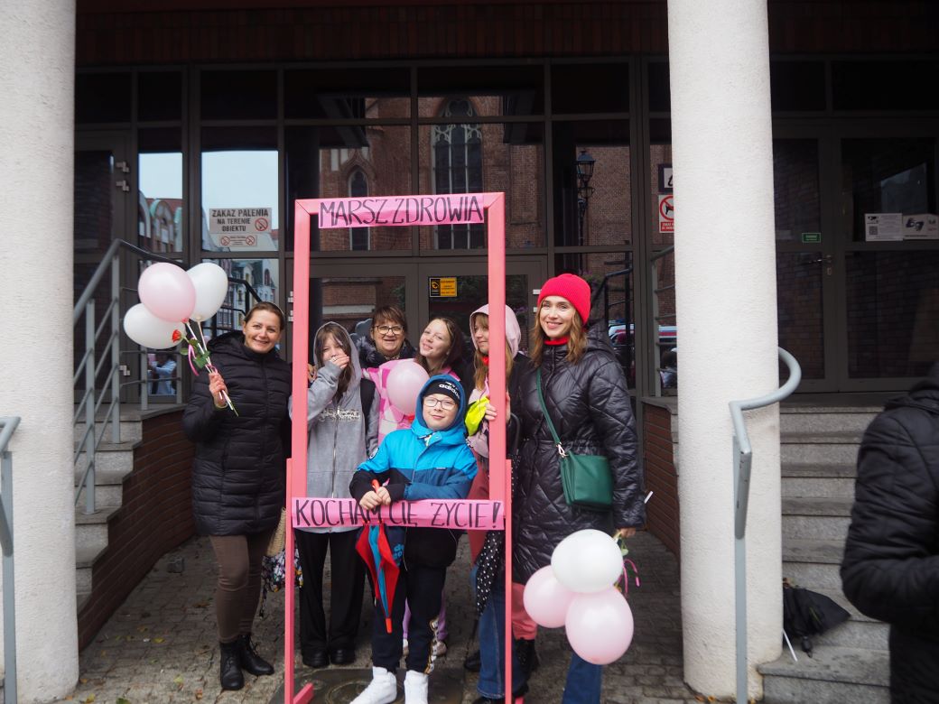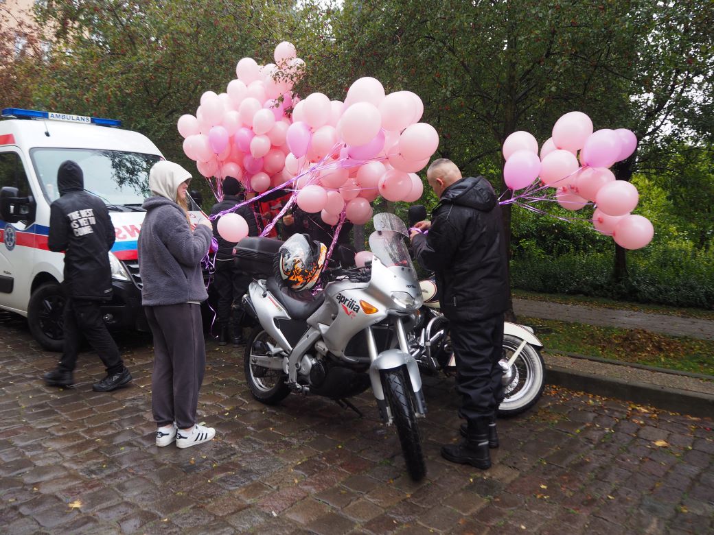 z przygotowanymi hasłami do ogłoszonego konkursu na najlepsze hasło promujące zdrowie. Marsz prowadzili motocykliści na motorach udekorowanych różowymi balonami wypełnionymi helem.