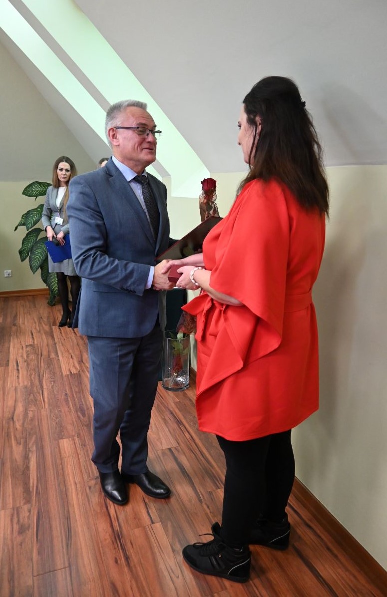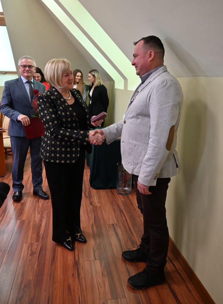 W dniu 24 listopada br. podczas Sesji Rady Powiatu w Elblągu miało miejsce uroczyste wręczenie odznak honorowych „Zasłużony dla Kultury Polskiej”, przyznanych przez Wiceprezesa Rady Ministrów, Ministra Kultury i Dziedzictwa Narodowego prof. dr hab. Piotra Glińskiego dla trzech mieszkańców powiatu elbląskiego: Justyny Wirkus z gminy Elbląg, Magdaleny Przybysz-Pietrzak z gminy Godkowo oraz dla Jerzego Subocz z gminy Gronowo Elbląskie. Kultura jest dobrem, na którym opiera się życie duchowe narodu, a obowiązkiem nas wszystkich jest pielęgnowanie i rozwijanie własnego dziedzictwa kulturowego, by funkcjonując w dzisiejszym globalnym świecie mieć świadomość i pewność swych korzeni. Wszystkim odznaczonym bardzo dziękujemy za zaangażowanie w pracę na rzecz krzewienia kultury wśród społeczności naszego powiatu.