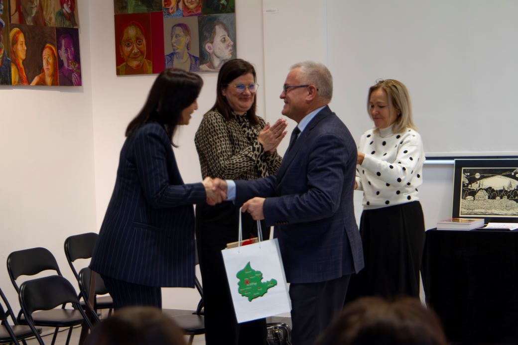 Na uroczystość przybyli: pani Urszula Januszewska z Centrum Edukacji Artystycznej w Warszawie, pan wicestarosta elbląski Ryszard Zając oraz pani Renata Perlińska- naczelnik wydziału promocji, edukacji kultury i sportu.