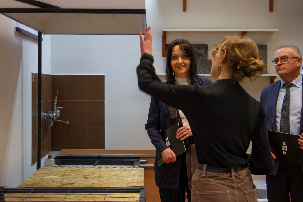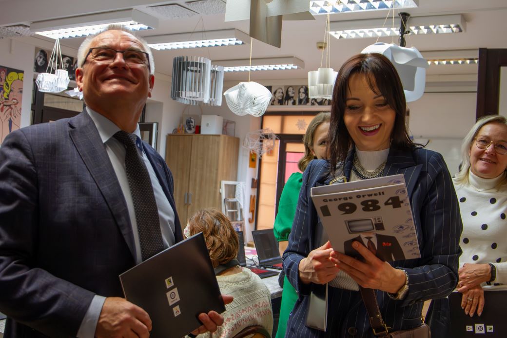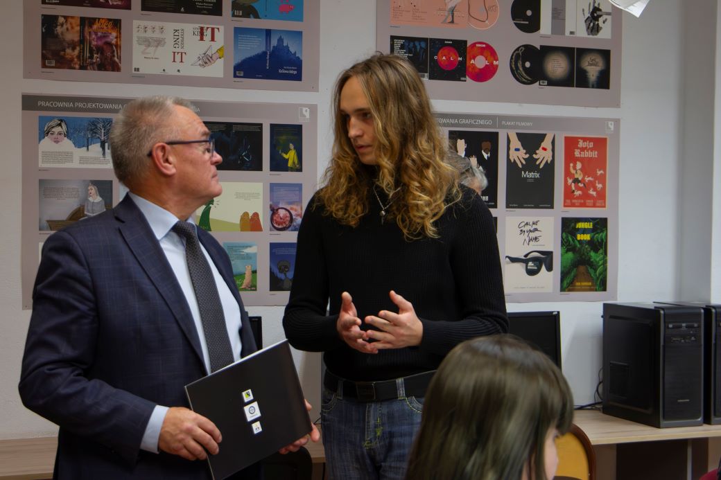 Po spotkaniu przedstawiciele Samorządu Szkolnego zabrali gości na spacer po pracowniach szkolnych.