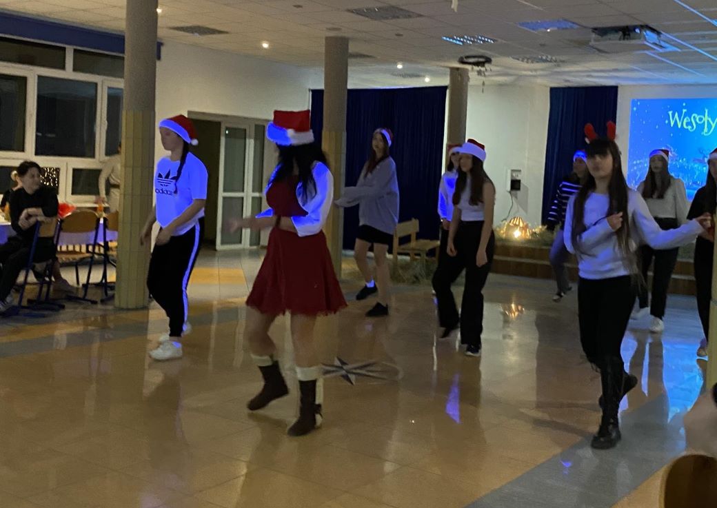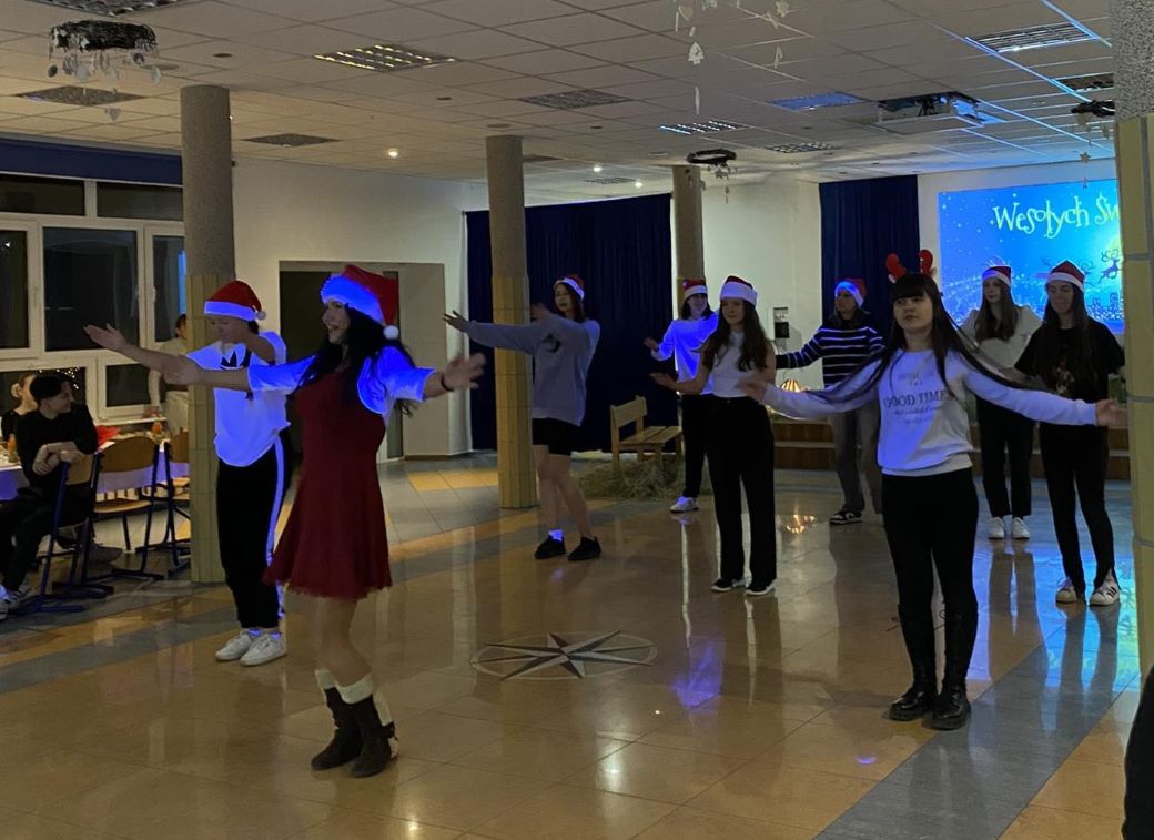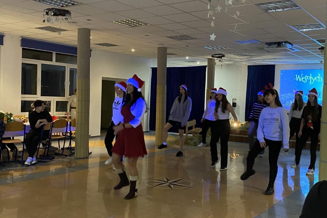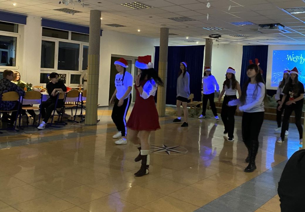 W świąteczny nastrój wprowadziły wszystkich życzenia składane przez Młodzieżową Radę Internatu zaproszonym gościom, wychowawcom oraz wychowankom, wesoły świąteczny taniec w wykonaniu dziewcząt do piosenki " Merry Christmas Everyone " oraz kolędowanie. Po krótkiej modlitwie i życzeniach Pana Dyrektora uczestnicy kolacji podzielili się opłatkiem oraz złożyli sobie życzenia. Na stołach nie zabrakło tradycyjnych, wigilijnych potraw.