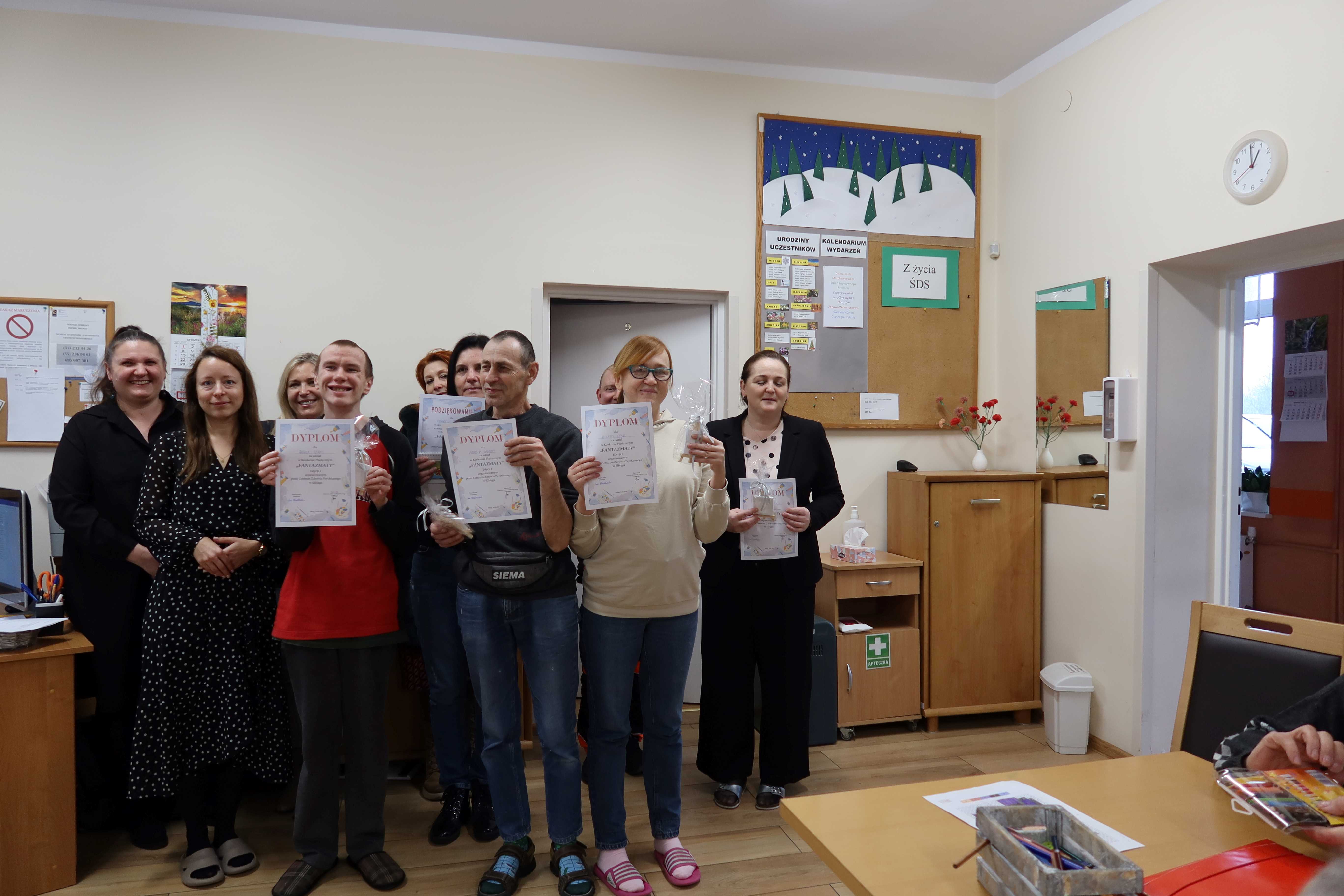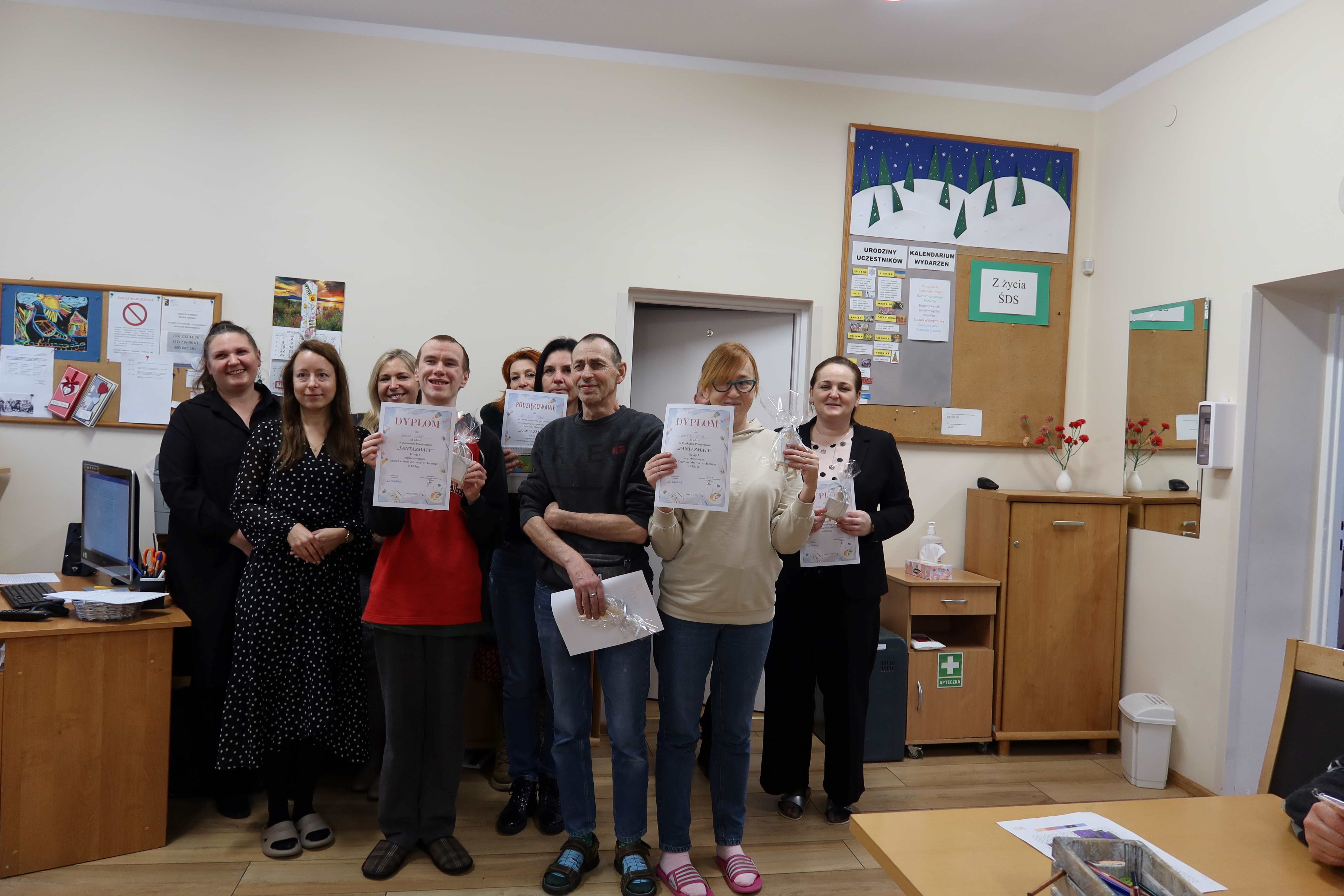 Dnia 19 lutego 2024 roku uczestników Środowiskowego Domu Samopomocy w Przezmarku odwiedzili przedstawiciele Centrum Zdrowia Psychicznego w Elblągu, w celu wręczenia podziękowań i drobnych upominków za udział w I edycji konkursu plastycznego „FANTAZMATY”. Udział w konkursie był dla naszych uczestników twórczym doświadczeniem, okazją do promowania aktywności artystycznej i kreatywności w społeczności ŚDS.