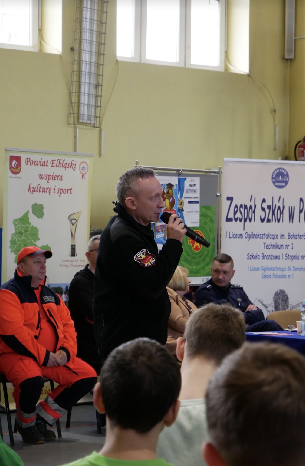 „Służby Edukują, Uczniowie Ratują” pod takim hasłem uczniowie klas mundurowych oraz wolontariusze z Zespołu Szkół w Pasłęku przygotowali spotkanie w dniu 22 lutego 2024 dla młodszych kolegów z klas podstawowych. Inicjatorami tego wydarzenia byli nauczyciele edukacji dla bezpieczeństwa Pan Tadeusz Gębarowski oraz Ks. Daniel Pałkowski, a patronat nad naszym wydarzeniem objął Starosta Elbląski.
