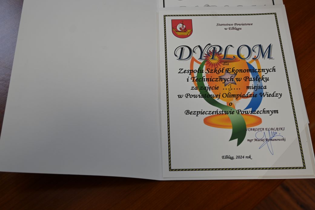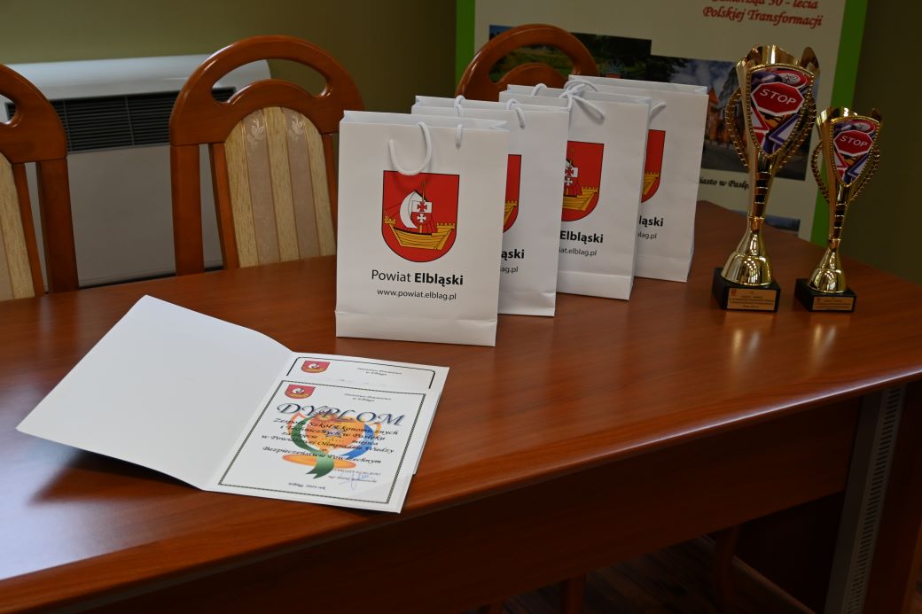 Zespołom biorącym udział zostały wręczone drobne upominki oraz pamiątkowe dyplomy i puchary. Zespół, który zajął I miejsce będzie reprezentować powiat elbląski w dniu 22 marca 2024 roku w Wojewódzkiej Olimpiadzie Wiedzy o Bezpieczeństwie Powszechnym.