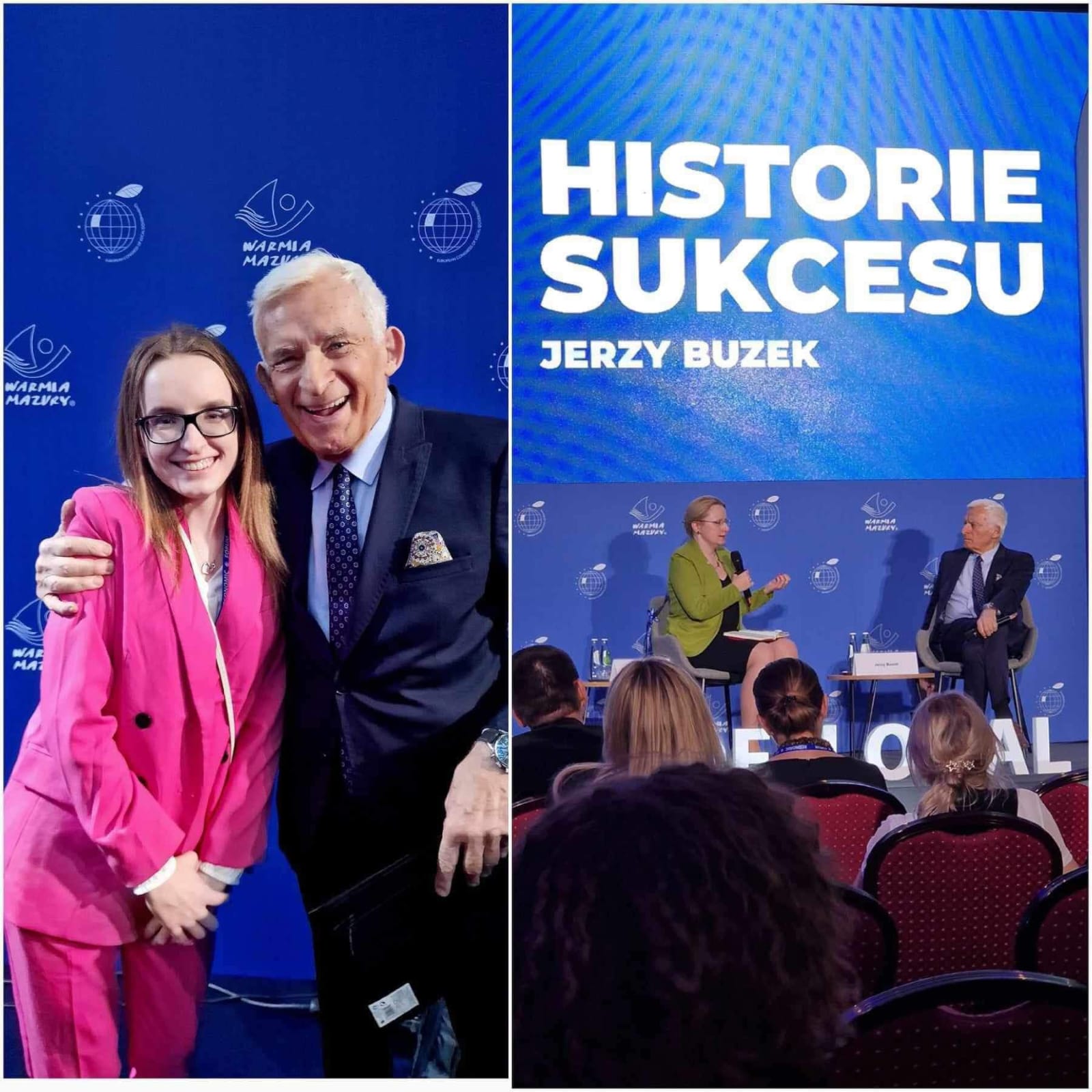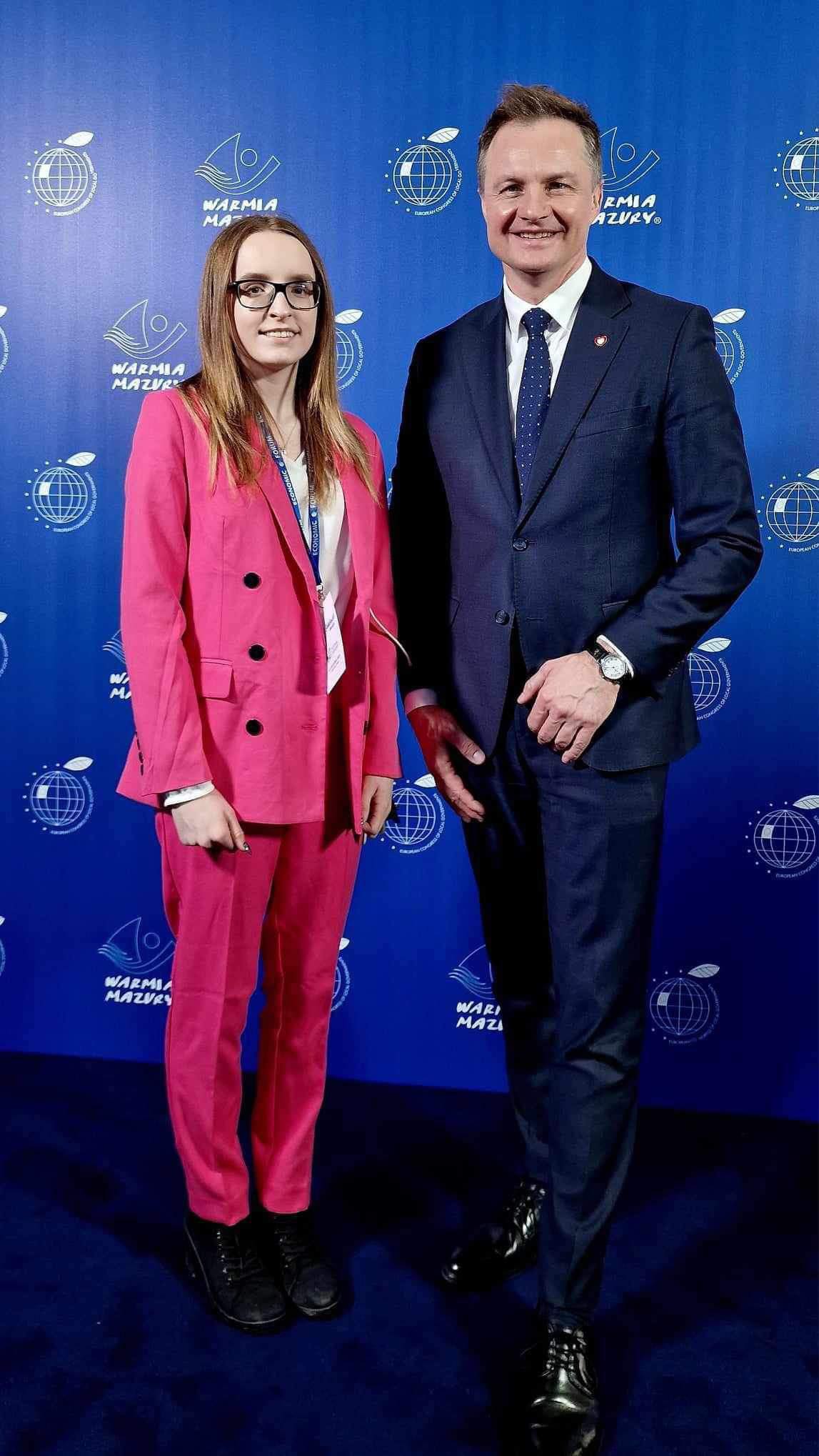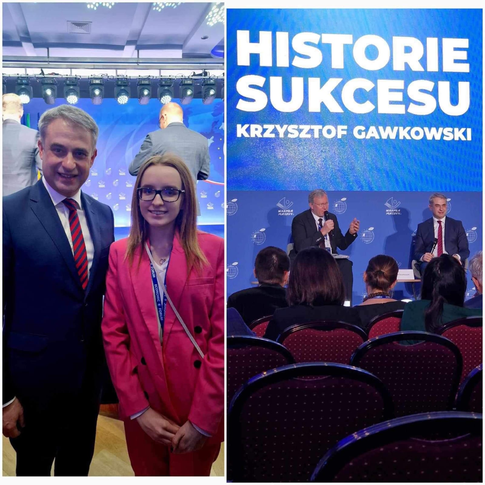 Uczennica Wiktoria Łukaszuk z klasy 3B w dniach 4 i 5 marca wzięła udział w IX Europejskim Kongresie Samorządów. Forum odbyło się w Hotelu Gołębiewski w Mikołajkach. Program obejmował ponad 200 wydarzeń: bloków programowych, paneli dyskusyjnych, warsztatów, wykładów. Spotkania odbywały się jednocześnie na trzech piętrach hotelu, w 15 salach konferencyjnych oraz na małej i dużej scenie. Wiktoria wzięła udział w panelach na temat: „Jaka powinna być europejska polityka spójności po 2027 r.?”, „Przyszłość idei decentralizacji w świecie”, „Decentralizacja - jak wzmocnić samorządność” oraz w trzech spotkaniach autorskich: „Historia sukcesu - Krzysztof Gawkowski“, „Historia sukcesu Jerzy Buzek”, „Premier Leszek Miller”. Spotkania poruszały problemy inwestycji, cyfryzacji i wykorzystaniu pieniędzy z KPO. Wśród zaproszonych panelistów byli m.in. były premier Leszek Miller, wicepremier i minister cyfryzacji Krzysztof Gawkowski, były przewodniczący Parlamentu Europejskiego Jerzy Buzek, marszałek województwa warmińsko-mazurskiego Marcin Kuchciński, sekretarz stanu Jacek Protas oraz wicemarszałek Sejmu Krzysztof Bosak.