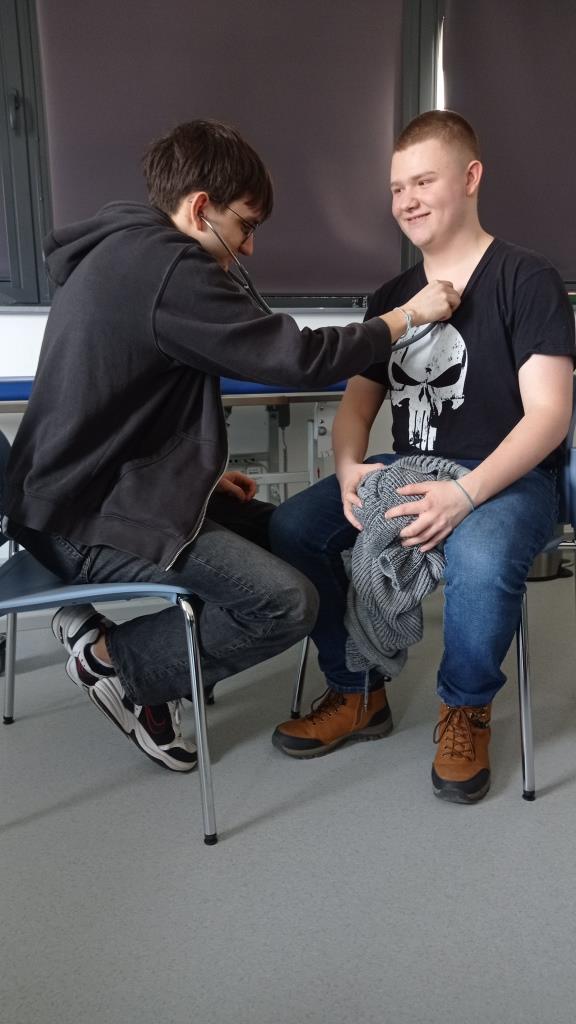 Największe wrażenie i zainteresowanie wśród młodzieży wzbudziło zwiedzanie pracowni w Centrum Dydaktyki i Symulacji Medycznych, m.in. anatomii, patofizjologii i sali imitującej prawdziwą salę szpitalną. W tym miejscu przyszli lekarze, ratownicy medyczni, pielęgniarki i położne zdobywają wiedzę i umiejętności z wykorzystaniem symulatorów medycznych, odzwierciedlających realne warunki, maksymalnie zbliżone do tych, które spotkają ich w późniejszej pracy.