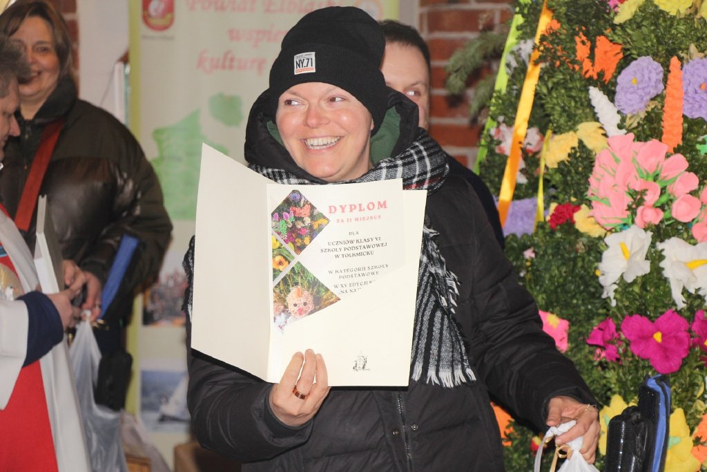 Bardzo cieszymy się, że nie słabnie zainteresowanie naszym konkursem. Wpłynęło 31 prac, wykonanych przez ok. 400 osób. Najmłodsi uczestnicy mają ok. 2,5 roku, najstarsi…, lepiej nie będziemy pytali, wszyscy są młodzi duchem. Dzisiejsze palmy pochodzą przeważnie z terenu Tolkmicka i naszej gminy, ale mamy też palmy z Elbląga, Markus, Zwierzna, Milejewa. Jest to więc konkurs regionalny!