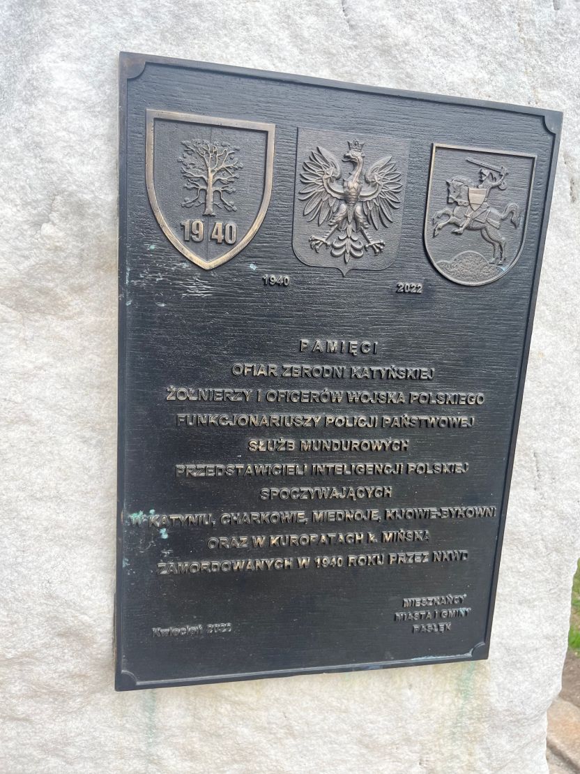 Po przemówieniu Burmistrza Miasta Pasłęka Wiesława Śniecikowskiego złożone zostały wieńce i wiązanki kwiatów. Hołd pomordowanym złożyli: burmistrz i przewodniczący Rady Miejskiej Marian Matuszczak, dyrektor Zespołu Szkół Ekonomicznych i Technicznych. Kadeci ZSEiT zapalili znicze pamięci. Obchody Dnia Pamięci Ofiar Zbrodni Katyńskiej odbyły się już po raz trzeci. Uroczystość miała skromny, ale jakże podniosły charakter.