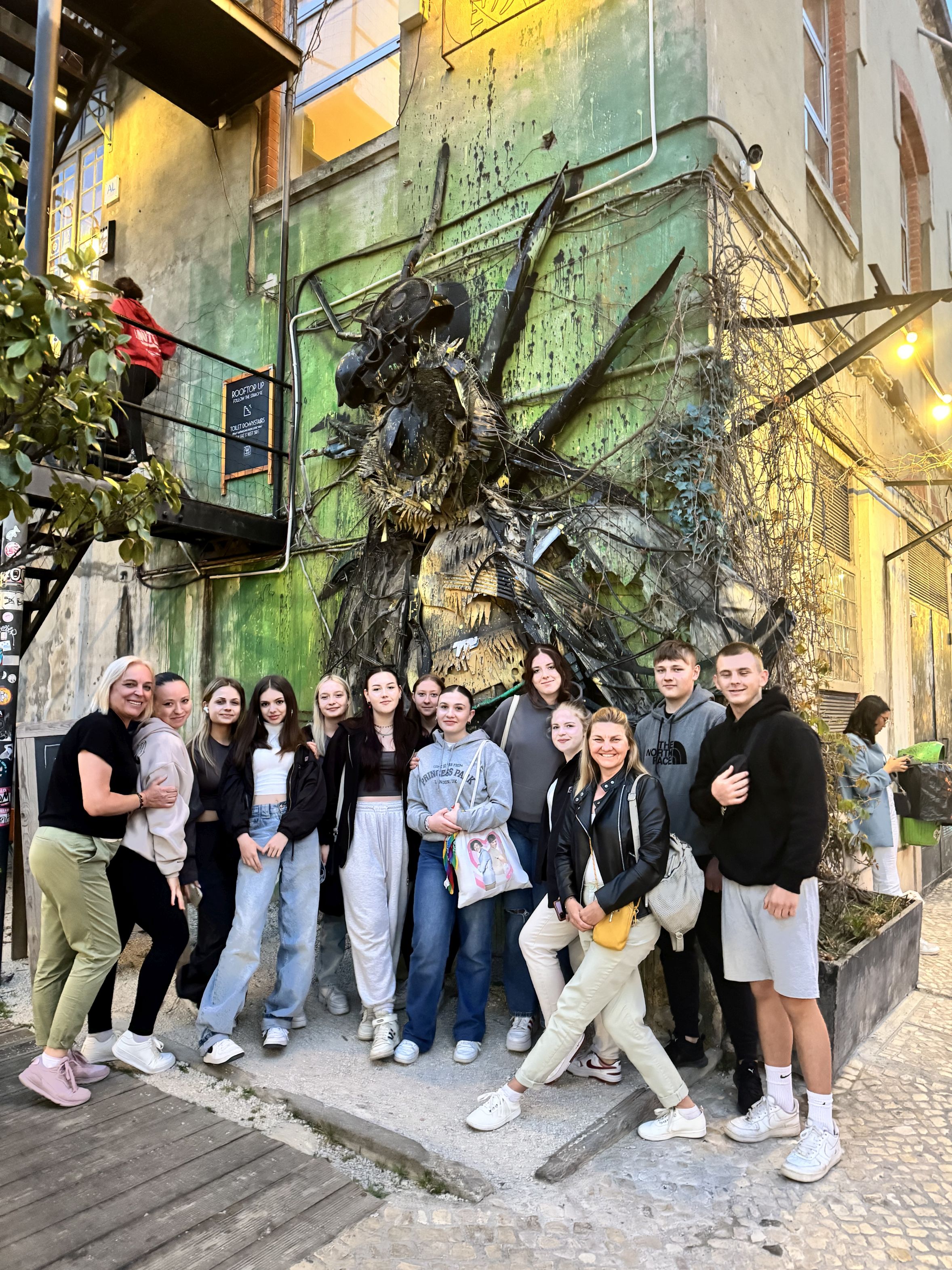 Uczniowie realizowali w Lizbonie dwutygodniowe staże zawodowe w ramach projektu Akredytacja Erasmus+ „Nowe umiejętności kluczem do sukcesu”. Przedstawiciele klas technikum kształcącego w zawodach: technik żywienia i usług gastronomicznych, technik agrobiznesu i technik ekonomista od 8 do 19 kwietnia 2024 podnosili swoje kompetencje zawodowe zgodnie z kwalifikacjami zawodowymi dla danego typu szkół w portugalskich firmach.