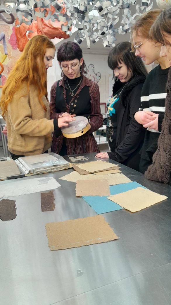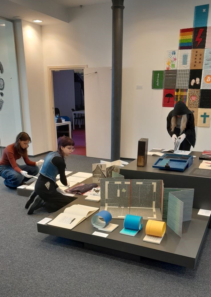 Uczestniczki miały okazję eksperymentować z szeroką gamą papierów i elementów składających się na formę wydawniczą w Muzeum Książki Artystycznej.