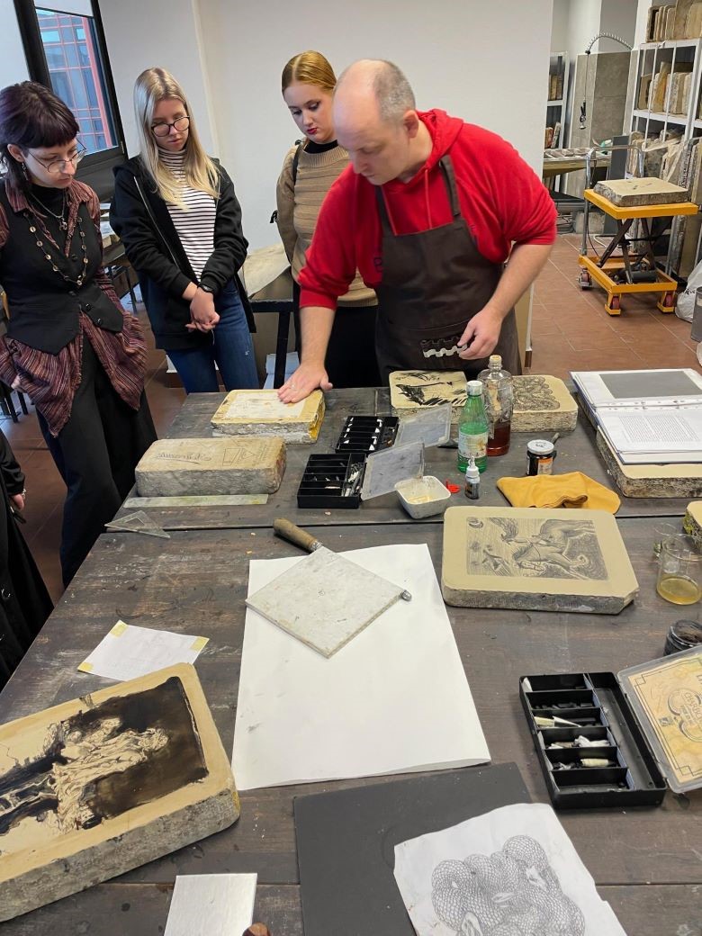 Duże znaczenie miał wyjazd edukacyjny do Łodzi, gdzie grupa uczestników miała możliwość rozwijać swój warsztat graficzny pod okiem profesjonalistów z Łódzkiej Akademii Sztuk Pięknych. Uczestniczki poznały nowe techniki twórcze, zmierzyły się z pracą graficzną m. in. w technikach ekologicznych oraz formami druku płaskiego, sitodruku.