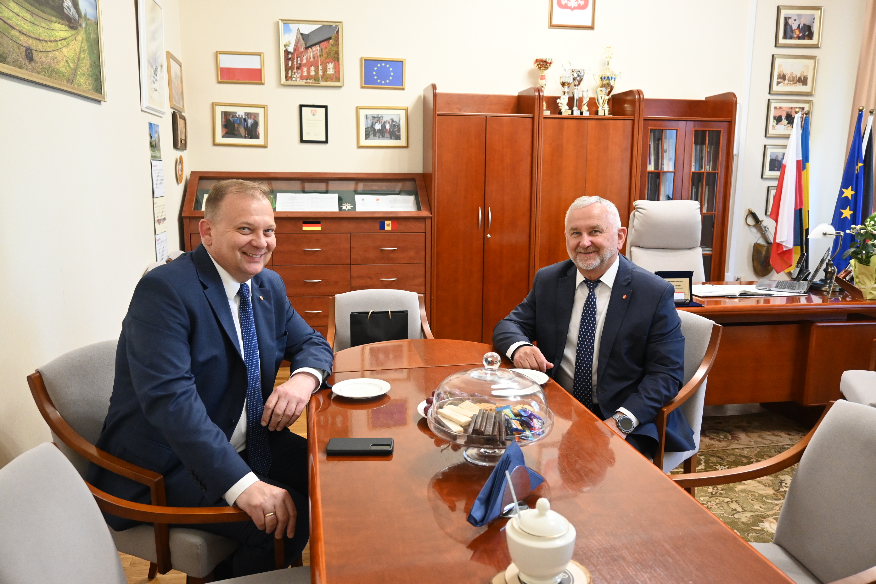 W dniu dzisiejszym Pan Maciej Romanowski Starosta Elbląski gościł w Starostwie Powiatowym w Elblągu Pana Michała Missana Prezydenta Elbląga. Podczas spotkania Panowie obejrzeli film o Powiecie Elbląskim, podsumowujący ostatnie inwestycje i przedsięwzięcia a także bieżącą aktywność samorządu powiatowego z lokalną społecznością. Omawiali szanse samorządów związane z nowym Kanałem Żeglugowym przez Mierzeję Wiślaną oraz wybudowanym mostem obrotowym w Nowakowie a także wspólne projekty w ramach Zintegrowanych Inwestycji Terytorialnych oraz Miejskiego Obszaru Funkcjonalnego. Uzgodniono wspólne przyszłe działania w zaistniałych ewentualnych sytuacjach kryzysowych. Rozmowy przebiegały w życzliwej i partnerskiej atmosferze.