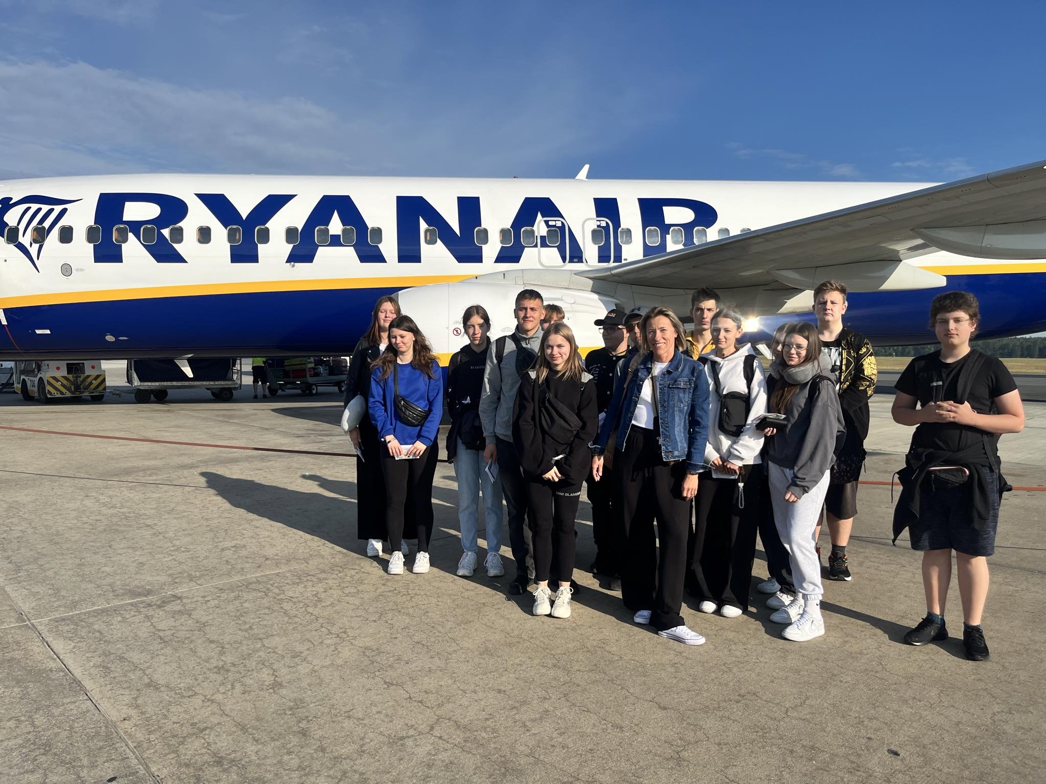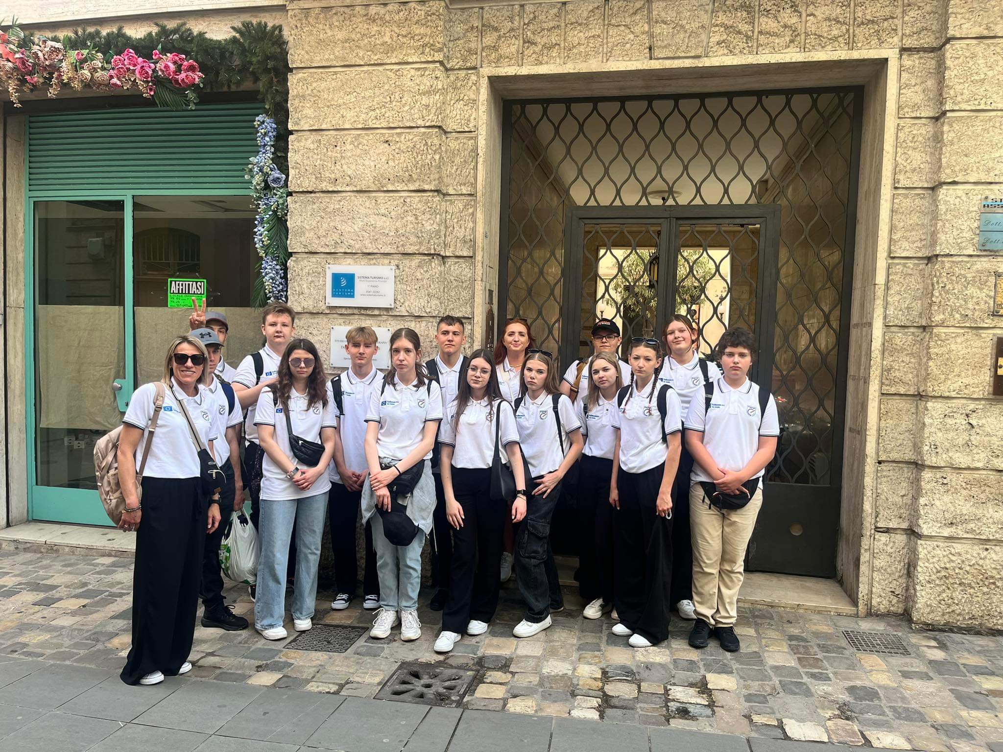 Podróż rozpoczęła się bardzo wcześnie, bo już o 1:30. Grupa wyruszyła z Pasłęka na lotnisko do Warszawy Modlin, gdzie dotarła po godzinie 4:00. Kolejnym etapem podróży był wylot o 7:45 do Bolonii, a następnie podróż autokarem bezpośrednio do Rimini. Po zameldowaniu w miejscu zakwaterowania młodzież posiliła się i wyruszyła na wstępne zapoznanie się z miastem.