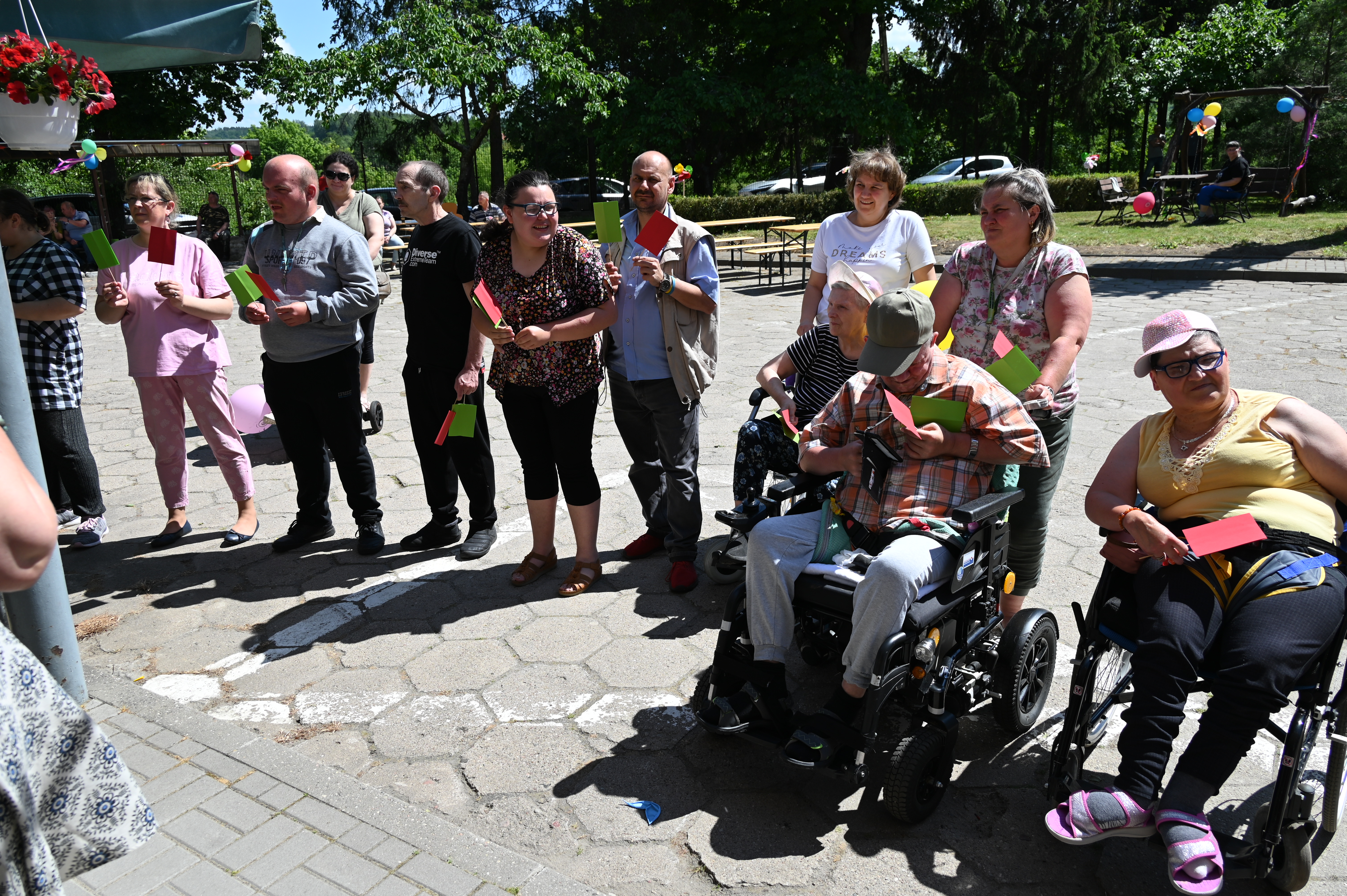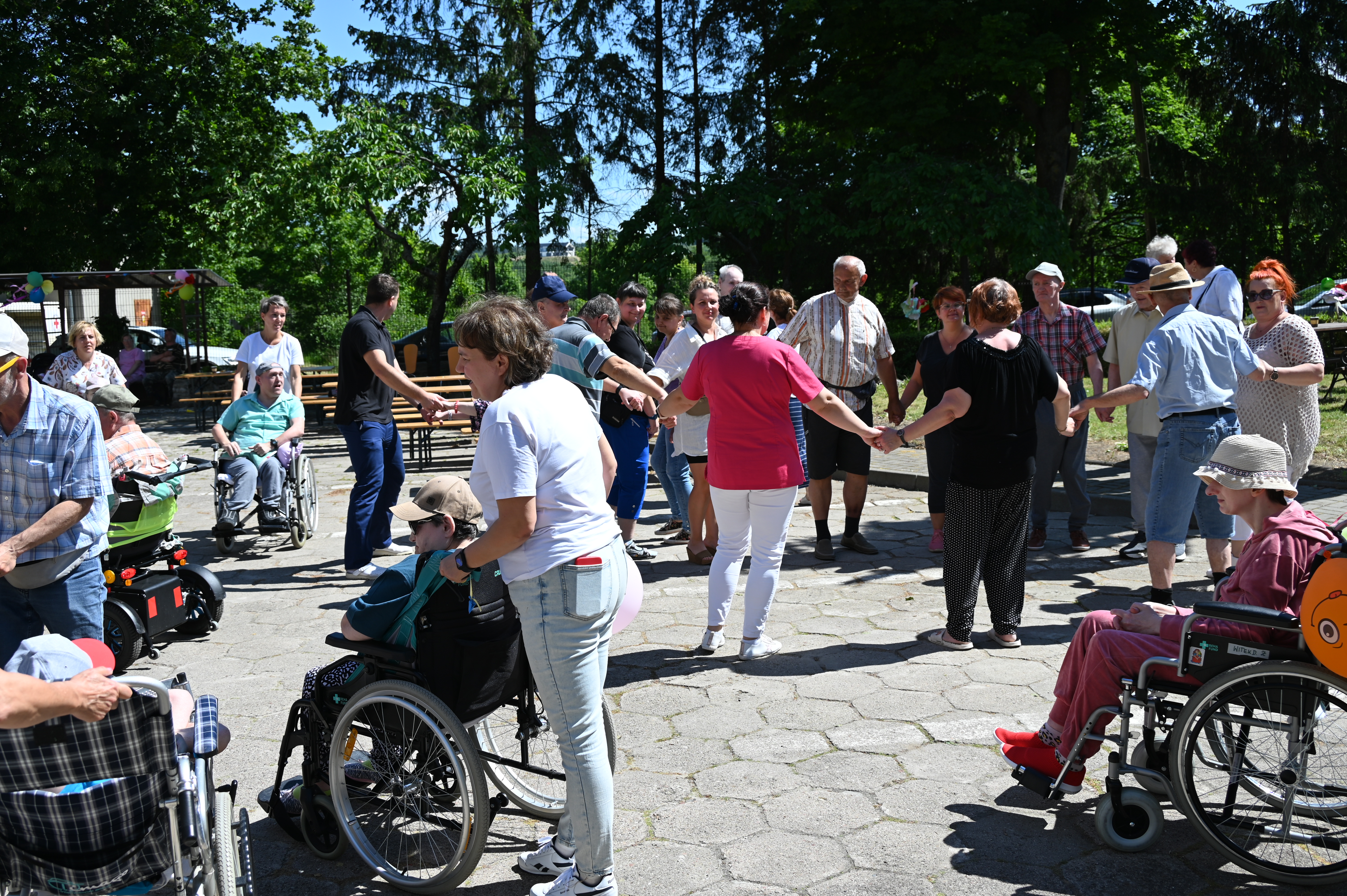 22 maja 2024 roku odbył się Dzień Otwarty w Domu Pomocy Społecznej w Tolkmicku. Grupa uczestników ze Środowiskowego Domu Samopomocy w Przezmarku, korzystając z zaproszenia miała okazję zapoznania się z ofertą Domu. Podopieczni zwiedzili placówkę, poznali zwyczaje i procedury tam panujące. Wzięli udział w zorganizowanych zabawach na świeżym powietrzu oraz tańcach przy żywej muzyce, które stanowiły nie lada atrakcję. Skorzystali z bezpłatnych porad pracownika socjalnego, pielęgniarki i rehabilitanta. Nie zabrakło różnorodnych pyszności w postaci przekąsek, dań na ciepło oraz słodkości.