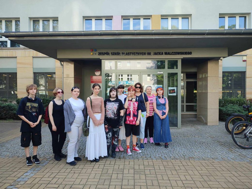 Pobyt w Liceum Sztuk Plastycznych w Częstochowie zaczął się dla nas intensywnie. Z samego rana zostaliśmy oprowadzeni po szkole. Naszą uwagę przykuło świetne zaopatrzeni pracowni specjalizacyjnych. W ofercie częstochowskiego liceum są cztery specjalizacje: realizacje multimedialne, jubilerstwo, ceramika oraz mural. Budynek szkoły jest otoczony pięknymi pracami uczniów. Wśród nich są również prace dyplomowe, które zapierają dech w piersiach.