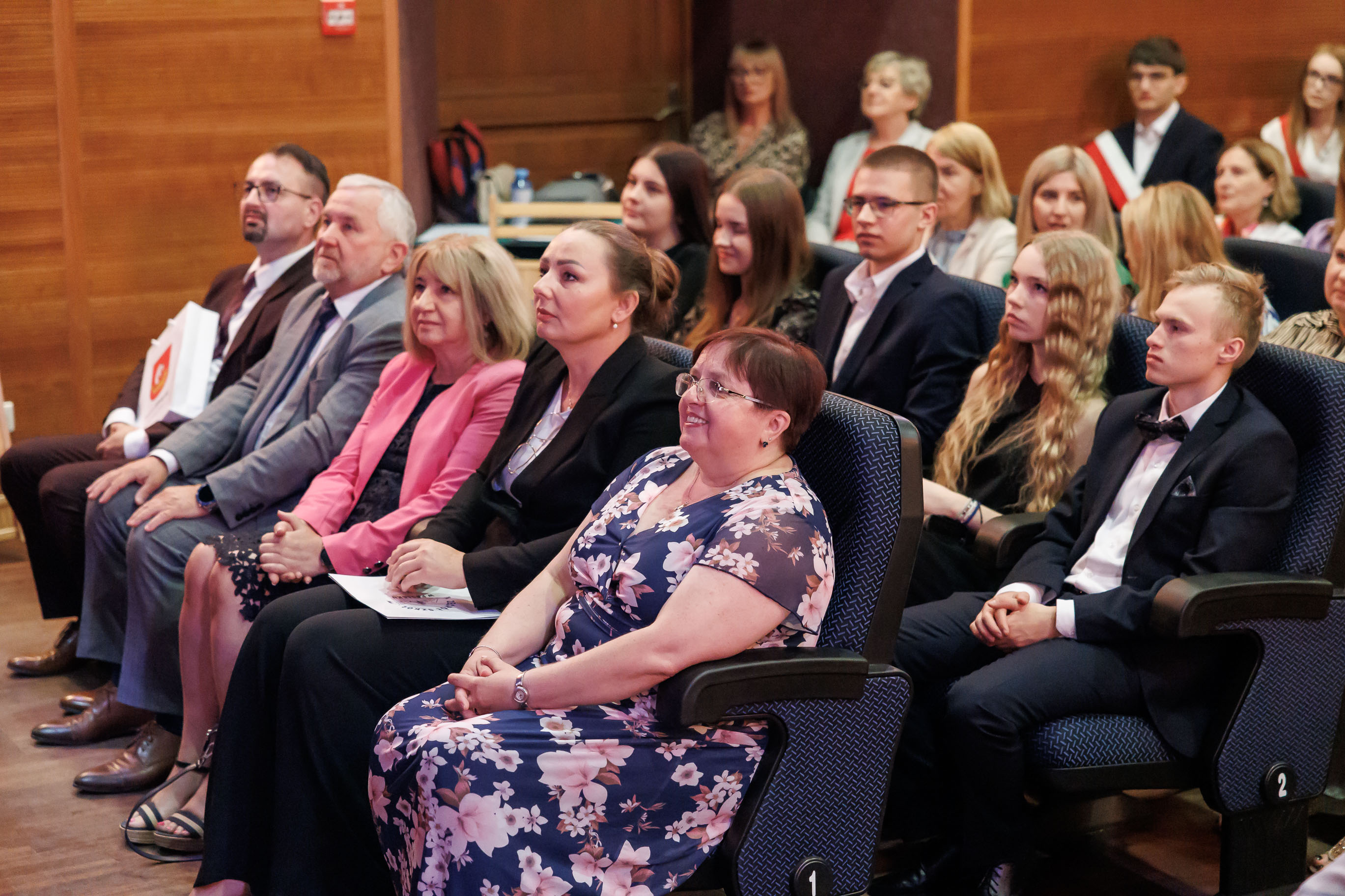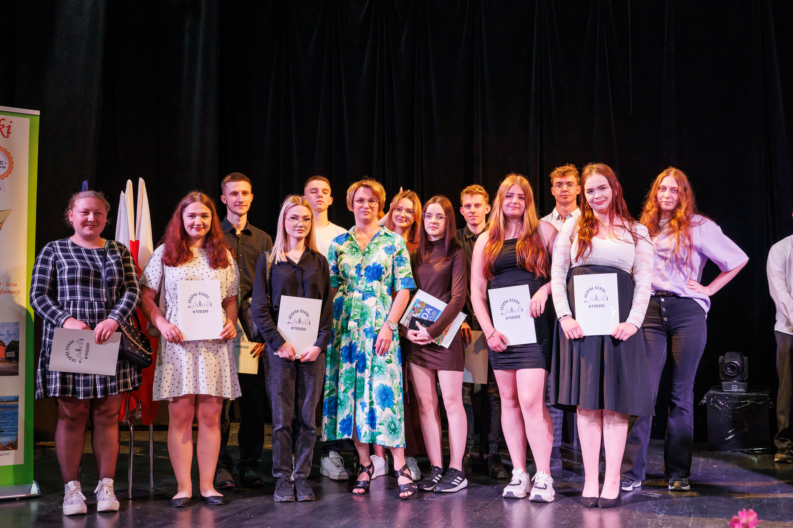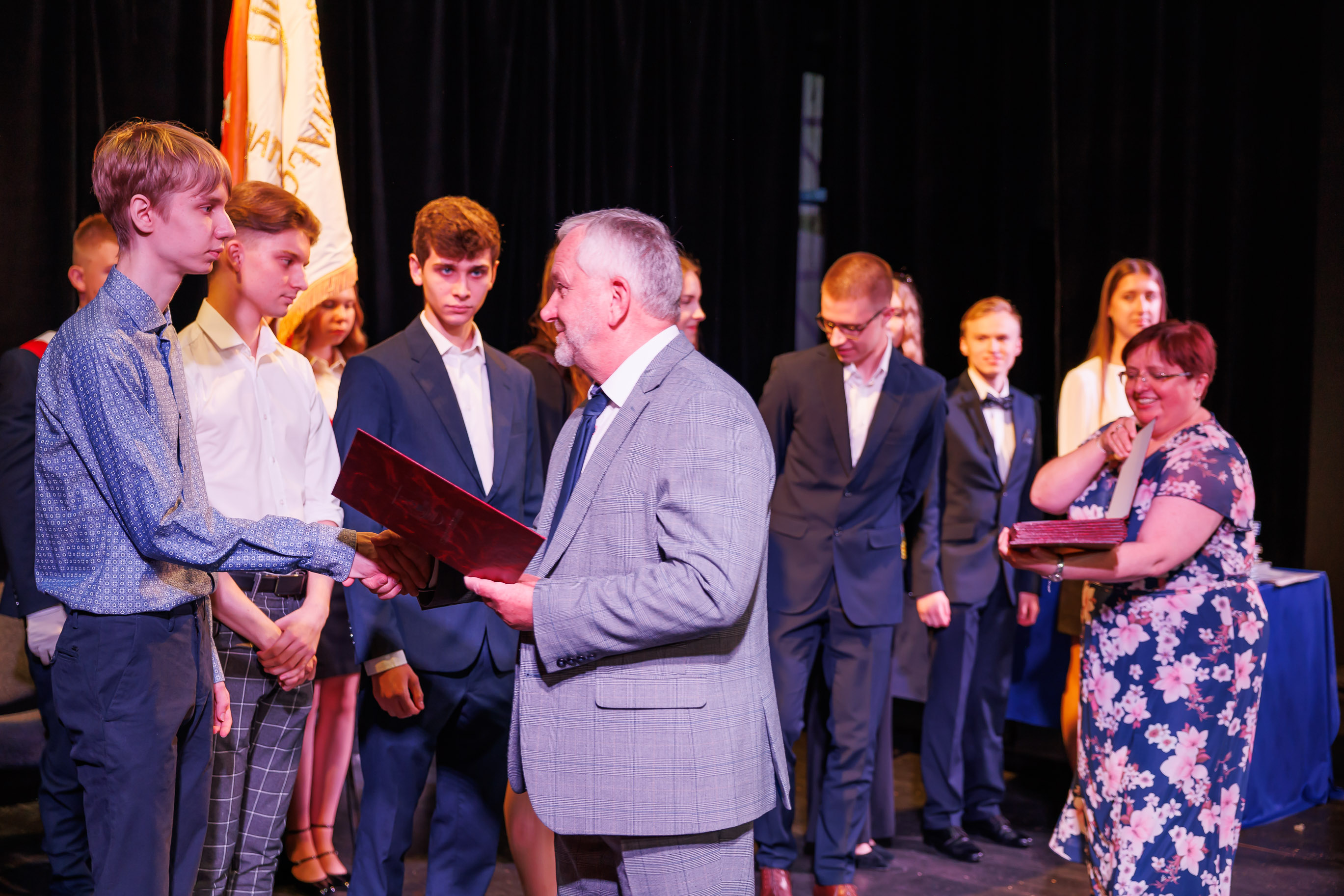 Po dziesięciu miesiącach wytężonej pracy uczniowie i pracownicy Zespołu Szkół w Pasłęku mogą nareszcie cieszyć się upragnionymi wakacjami. Termomodernizacja szkoły trwa, dlatego oficjalna uroczystość zakończenia roku szkolnego 2023/2024 odbyła się w Pasłęckim Ośrodku Kultury. Pełniąca obowiązki dyrektora Katarzyna Panimasz w obecności zaproszonych gości –Macieja Romanowskiego Starosty Elbląskiego, Elżbiety Wasiuk Burmistrza Pasłęka oraz Joanny Domerackiej Przewodniczącej Rady Rodziców, poinformowała o ogólnych wynikach klasyfikacji końcowej. Najwyższe wyniki w nauce uzyskały klasy I A LO (4,67), II C LO (4,30) oraz III A LO i II B LO (4,29).