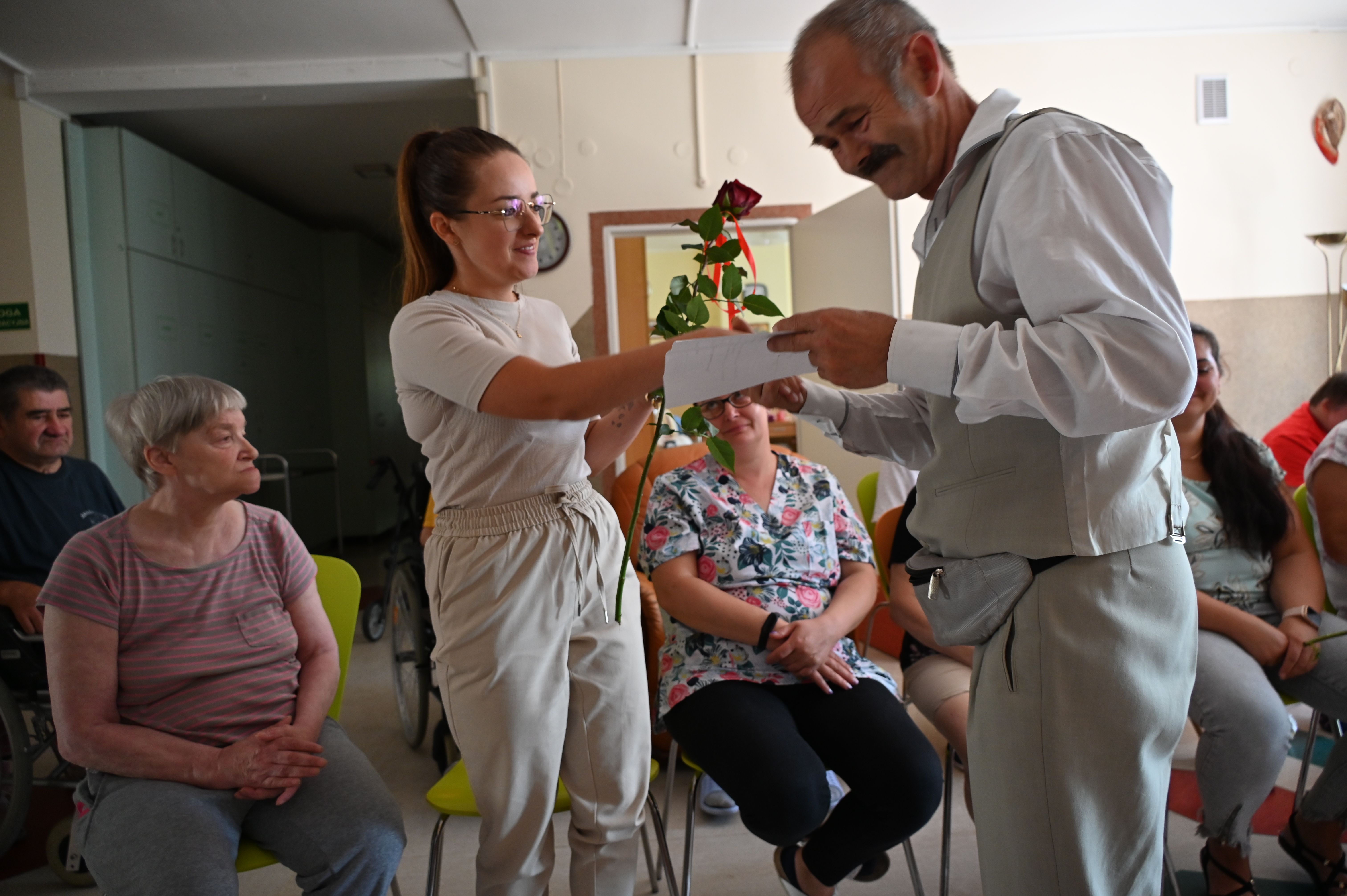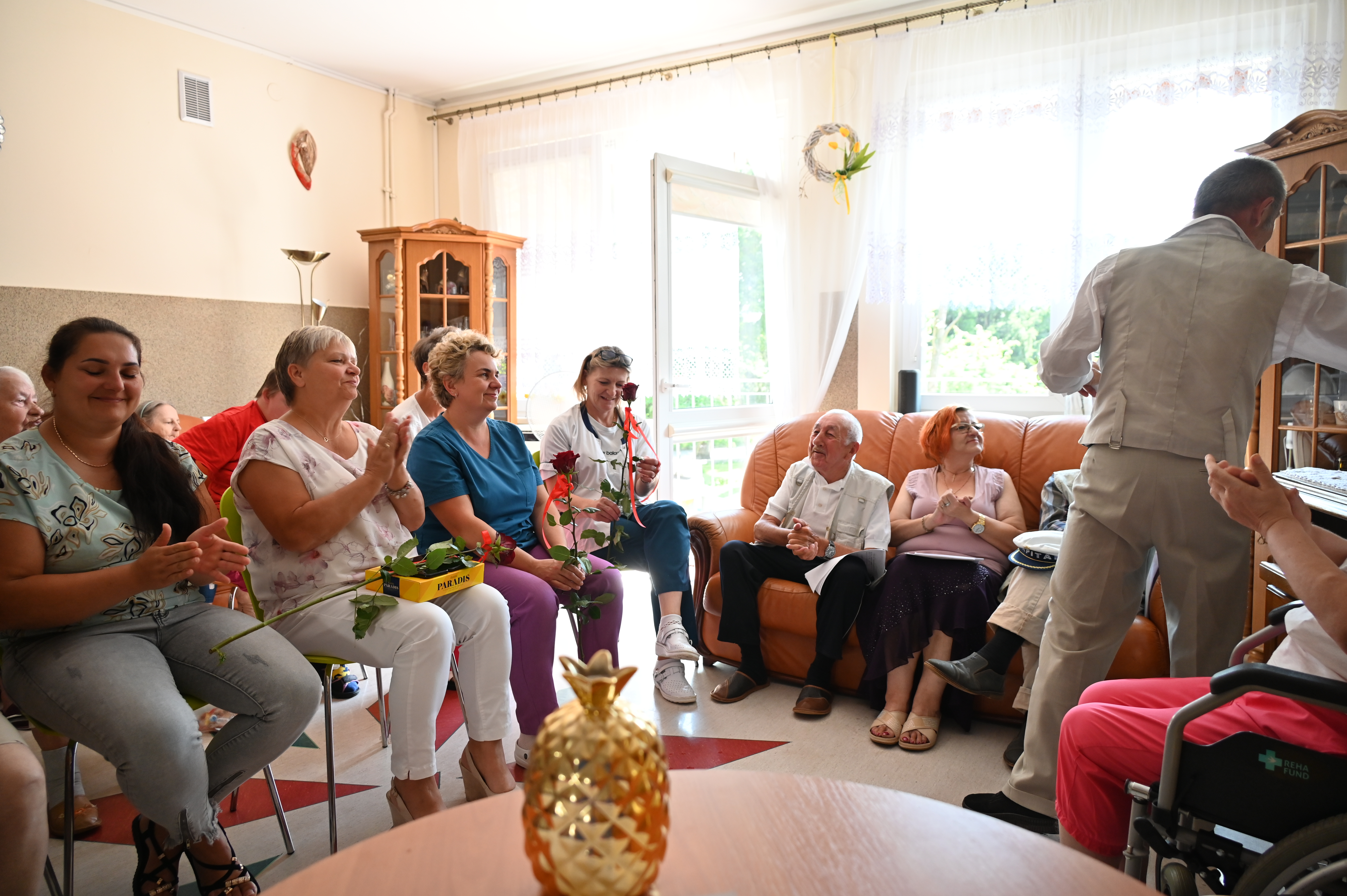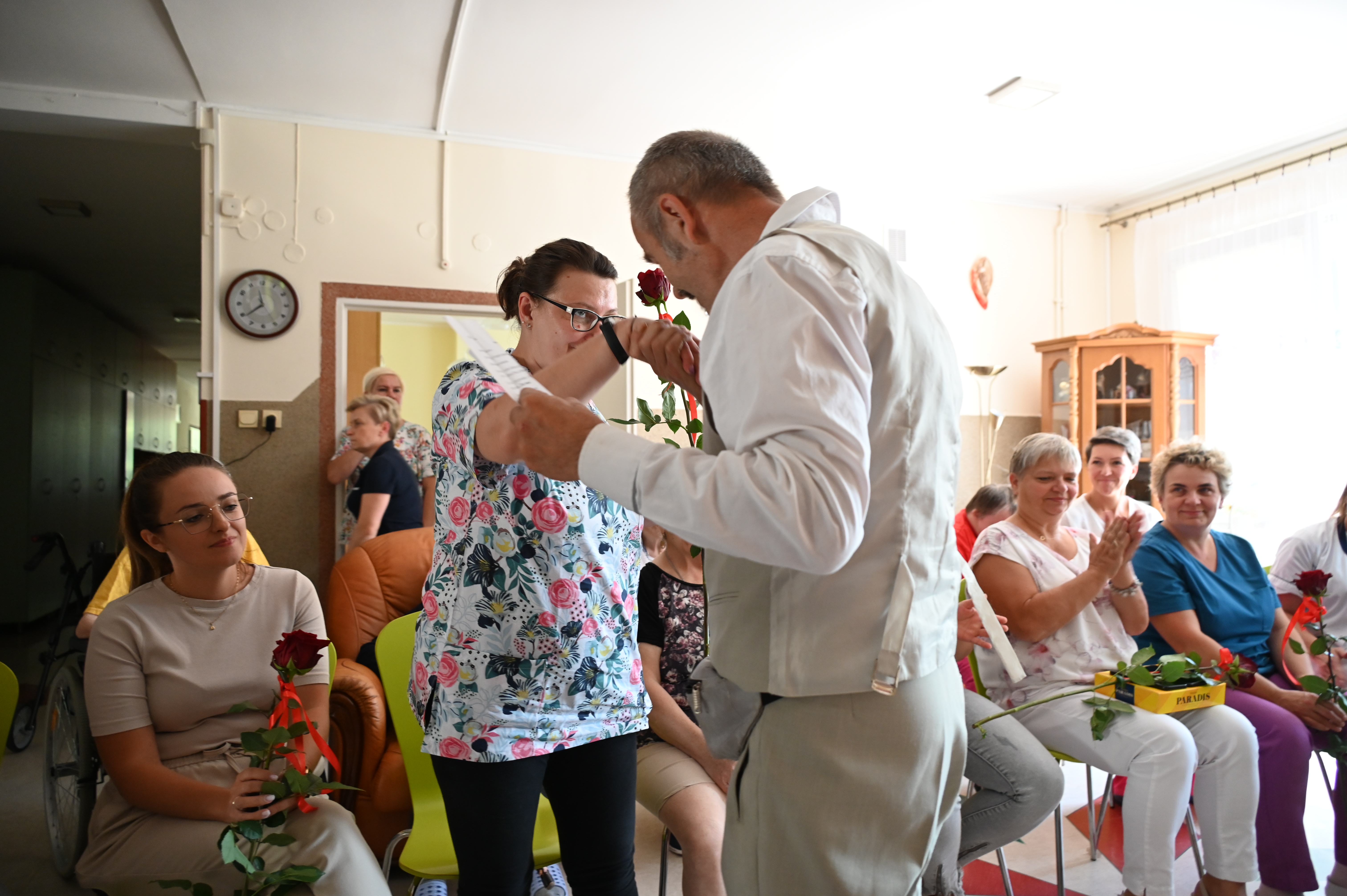 Dziś, 26 lipca, mieszkańcy DPS Tolkmicko świętowali imieniny Anny, tej „już jesiennej panny”. W przygotowanej z tej okazji, niepozbawionej humoru i pełnej ciekawostek, inscenizacji staraliśmy się opowiedzieć wszystko, co na temat imienia Anna można znaleźć w księgach i internetach. Były cytowane przysłowia (aż 17), wspomnienia o znanych postaciach literackich i historycznych, przedstawiliśmy wyjaśnienie pochodzenia i znaczenia imienia Anna, charakterystykę cech osobowości i wyliczenie atrybutów przypisanych naszym solenizantkom (np. liczba - 3, zwierzę – lis, owoc – dynia, kwiat – róża, kolor – jasnoniebieski i wiele, wiele innych). Każdy rozdział naszej opowieści ilustrowany był znanymi przebojami polskich artystów, rozbrzmiewała Anna – Stana Borysa, Jambalaya – Anny German oraz Anna już nie mieszka tu – Haliny Frąckowiak. Szczególne zainteresowanie wzbudziła historia Anusi z Tarowa, skromnej kobiety żyjącej w XVII wieku, o której poeta Simon Dach napisał jeden z najpiękniejszych wierszy miłosnych, jakie kiedykolwiek powstały. Anusia ta stała się z czasem uosobieniem dobrej, spokojnej i szczęśliwej miłości, po dziś dzień zakochani zwracają się do niej z prośbą o darowanie uczucia łączącego dwoje ludzi na całe długie i szczęśliwe życie. Pomnik Anusi z Tarowa stoi w szacownym portowym mieście Kłajpeda, przed ratuszem, na Placu Teatralnym i tam właśnie należy kierować swoje kroki, gdy jesteśmy zakochani.
