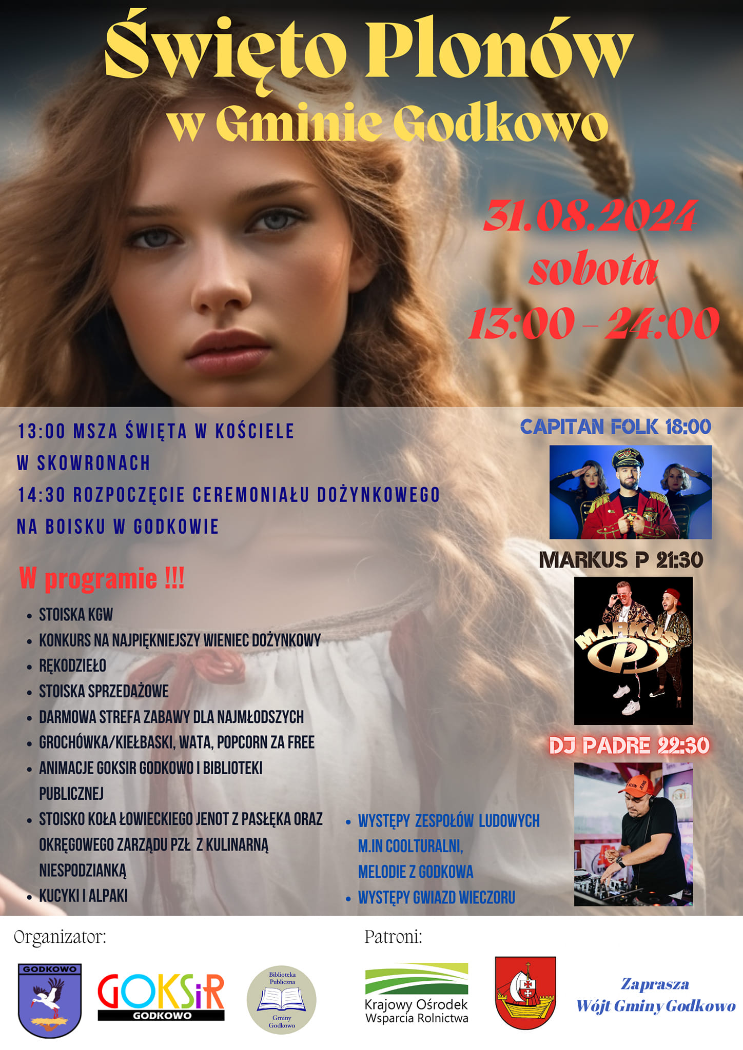 Gmina Godkowo serdecznie zaprasza w sobotę 31 sierpnia do Godkowa na tegoroczne Święto Plonów.